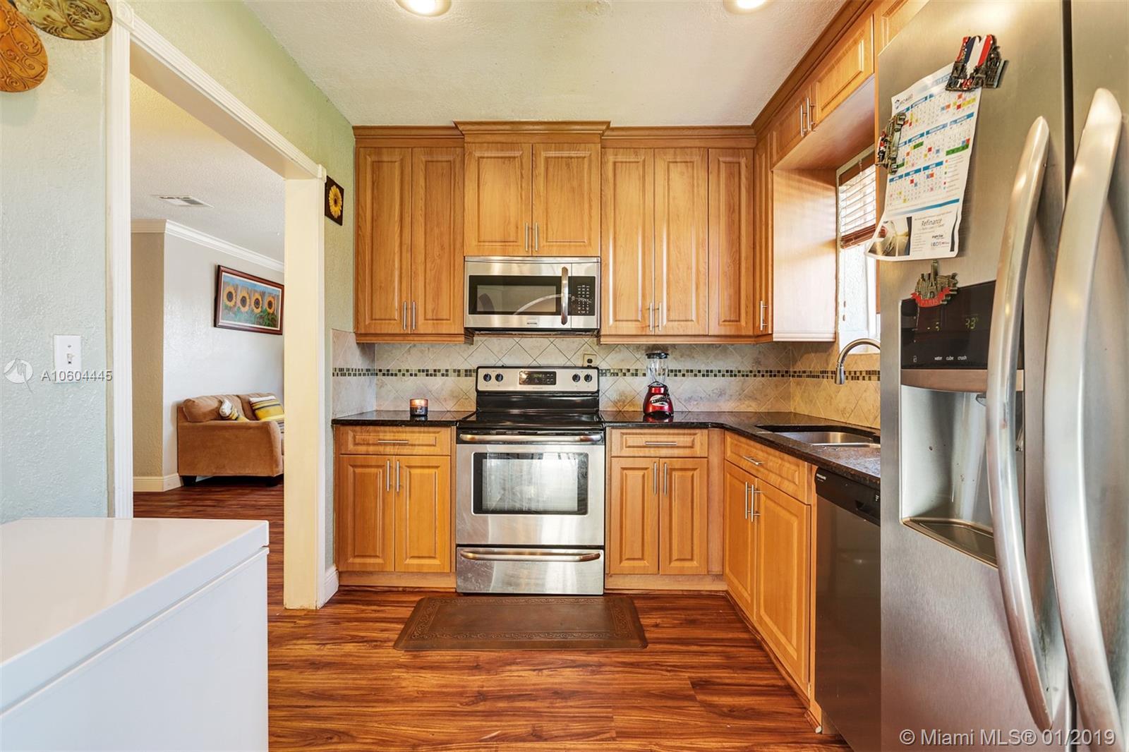 This beautifully updated 3BR/2BA home is situated in a quiet No HOA community in West Hollywood. Sure to delight the chef of the family, the updated kitchen is equipped with a gorgeous tile backsplash, sleek granite countertops, and a full suite of newer stainless steel appliances. The perfect space to relax or entertain, the spacious fully fenced backyard offers a small storage shed, landscaping and an oversized paver patio. Other features include impact windows and doors, tankless water heater (2015), new washer and dryer (2018), a brand new roof (2018), updated bathrooms, and new waterproof vinyl flooring throughout.