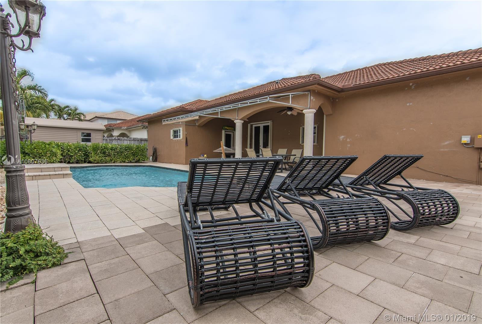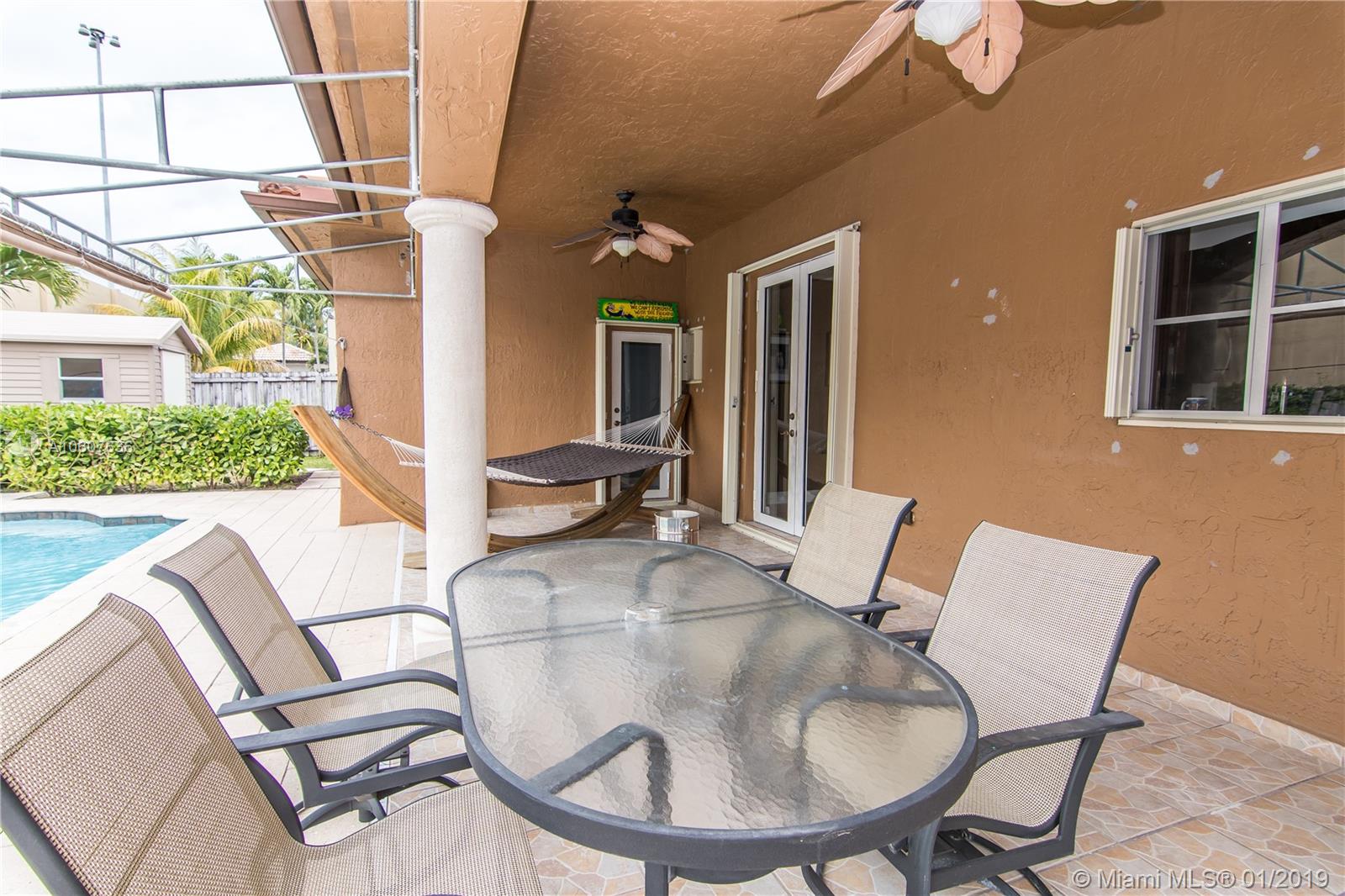 Pristine single family house located in sight after West Lakes community.Great location Near I-75, schools ,grocery stores and coming soon the largest mega mall in the US. Salt water pool recently refinished. Accordion and plantation shutters. Upgraded kitchen, move in condition, cabana bath. Very low HOA, private backyard with storage shed. High ceilings just to name a few extras.