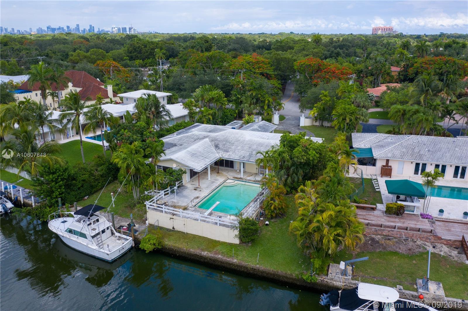 Price reduced again for this Coral Gables waterway home that requires total renovation, or you may choose to tear it down and build your dream home. Walled estate with porte-cochere. Tax records reflect 109' on the water. Secluded quiet tree-lined street, huge pool and patio area. Bring your architect, your imagination, and your checkbook. Make an offer and make it yours.