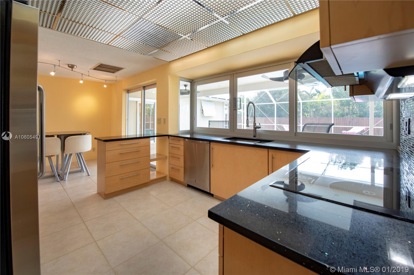 SMOOTH, SMART AND SOPHISTICATED - Modern-Contemporary meets original Hollywood Hills design from the beautiful curb appeal to the resort like backyard.Home offers many upgraded features and added bonuses.This home is impeccable and well-planned with 3 beds, office(or 4th bedroom), remodeled baths and a kitchen w/custom cabinets, SS Kitchen Aid & Electroluz appliances, induction cooktop, quartz counters and modernized backsplash. Full hurricane credit includes IMPACT WINDOWS. Home offers plank ceramic flooring, 2014 A/C and oversized paver circular driveway. Home is pre-wired for surveillance system. Pool deck extended 8' with cool deck, mosaic pool tile and fiber optic in-pool lighting. Wired speakers in LR, den and pool area. Owners pride shows in the maintenance of this home.