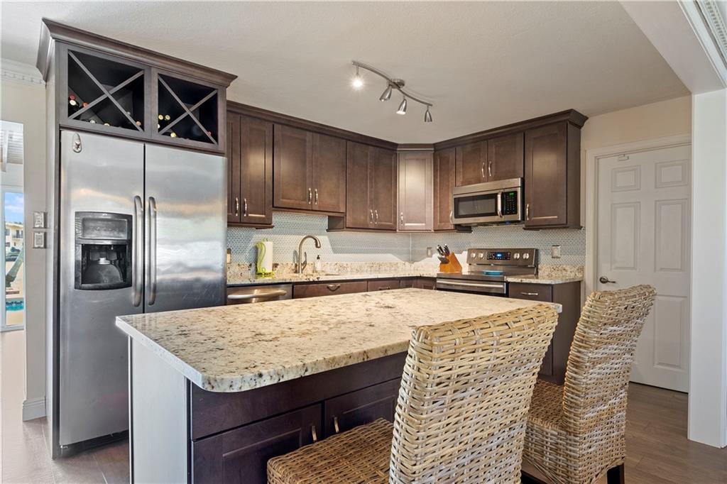 Waterfront Beauty! Lovely four bedroom 3 bathroom pool home offering lots of light with granite island kitchen and stainless appliances and new tankless water heater. Newer impact windows and doors throughout. Florida room looks out over the heated pool to the pristine waterway with dock. Fully fenced yard, bring the dog.
