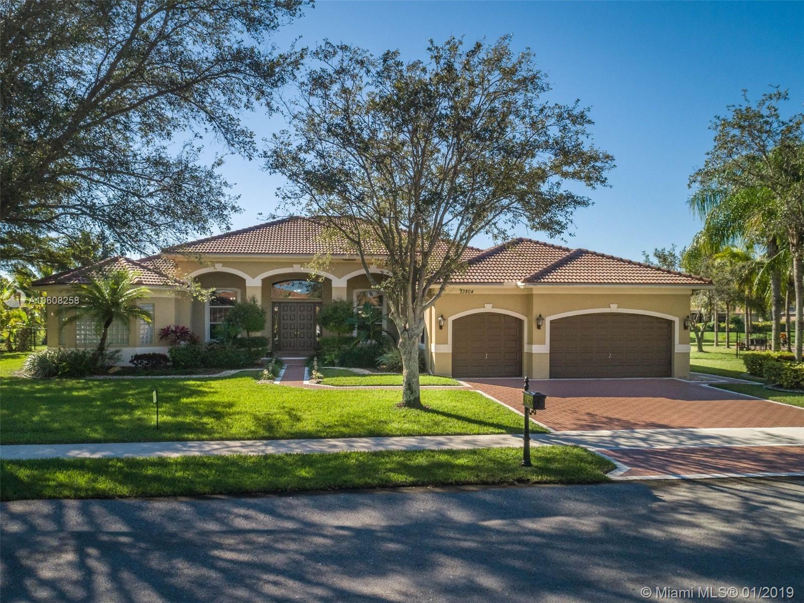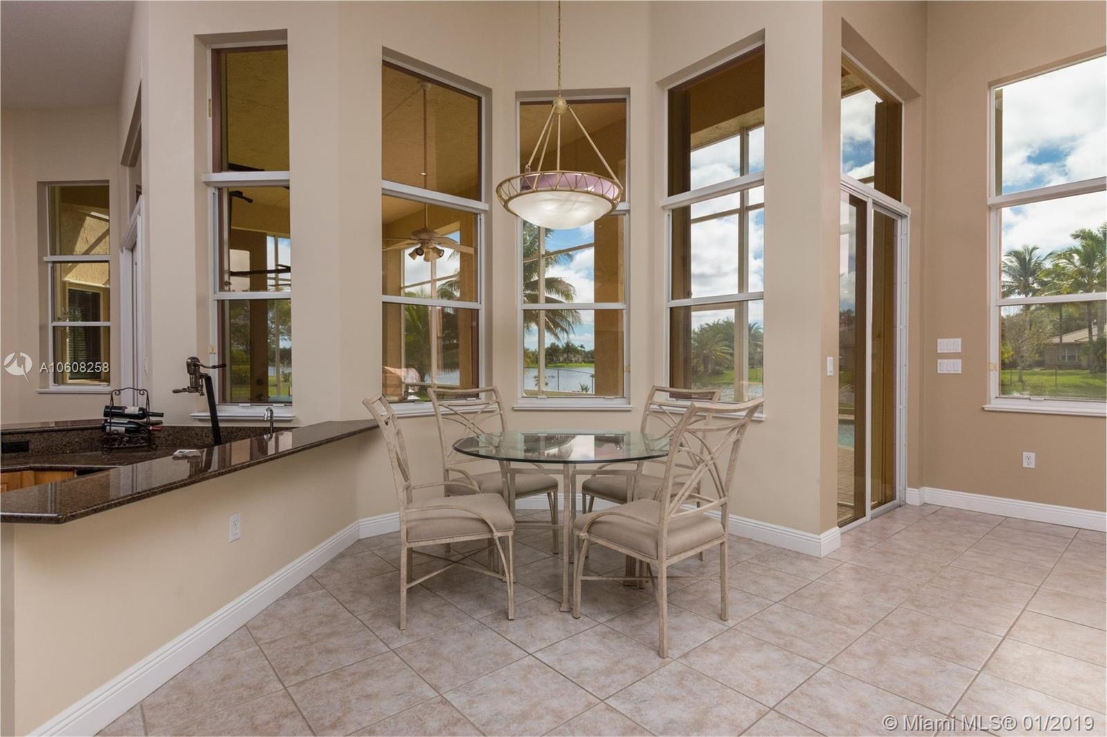 Imagination Farms is a west Davie outstanding community. On the NE corner of I75 and Griffin Rd, major highway access is a huge bonus. "Waterfront Oasis" is situated on a half acre lot. Your family will greatly enjoy this amazing space. Views of water and pool are abundant and breathtaking. Architectural features of the home are 14' and 10' ceilings, 8' door heights, cooper plumbing, an 8 year old roof, 3 HVACs and accordian hurricane shutters. Professional kitchen with double convection ovens, microwave, dishwasher, water filtration and single bowl sink topped with granite. Towering wall unit, 9 ceiling fans, light fixtures, ceiling speakers, intercom, pool equipment, front load washer, dryer and garage openers all remain. Well maintained. Great schools, great community, great home.