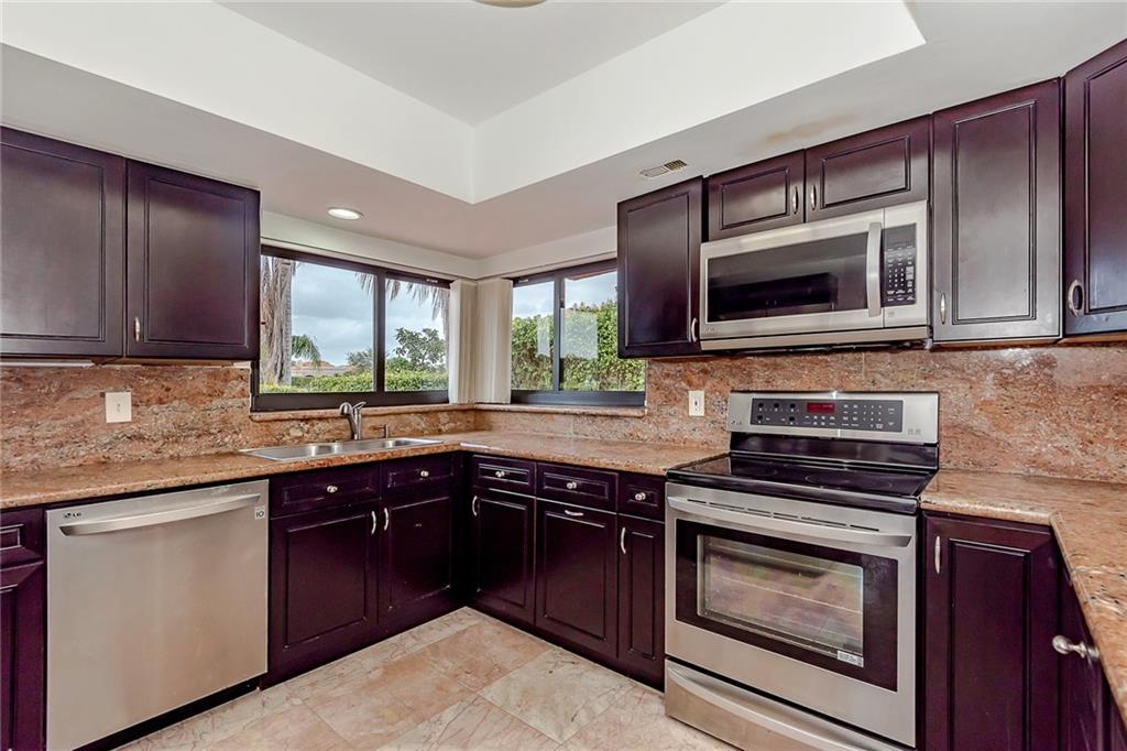 Beautiful 3 Bedroom 2 1/2 Bath Home With 2 Car Garage on The Water With Golf View! Tropical Landscaping, Vaulted Ceilings, Working Fireplace, 2 Zone A/C's, Recessed Lighting, 5 Year Old Roof, Impact Windows & Doors. Beautiful Marble Tile Flooring Throughout the 1st Floor. Elegant French Doors Leading to a Gorgeous View of the Lake and Golf Course. Kitchen is Fully Updated with Granite Countertops, & Stainless Steel Appliances. Oversized Master Bedroom With Stunning View, 2 Closets, Dual Sinks, Updated Shower, & Roman Tub.