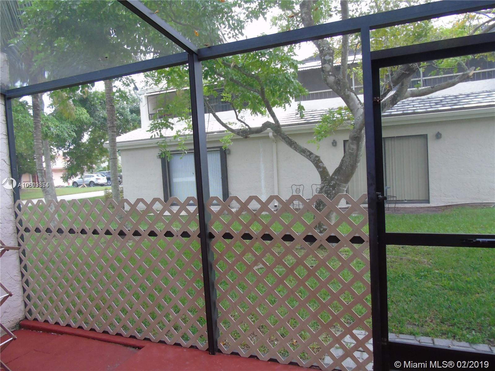 Updated and spacious two story Villa Townhouse in Coral Springs. Updated Kitchen with Granite Counter Tops, easy white tile throughout first floor, in unit laundry, each of the 3 large upstairs Bedrooms boast with laminate floors, spacious closets and huge balconies. In a very quiet and safe community, nearby to main restaurants, excellent schools, Pulix, Walgreens, gas station, and quick access to the Sawgrass expressway. The neighborhood takes care of beautiful green landscaping you can enjoy looking out from the large screened patio or many balconies. The lush side yard is great for playing and is just steps from the pool. Perfect for enjoyment or investment!