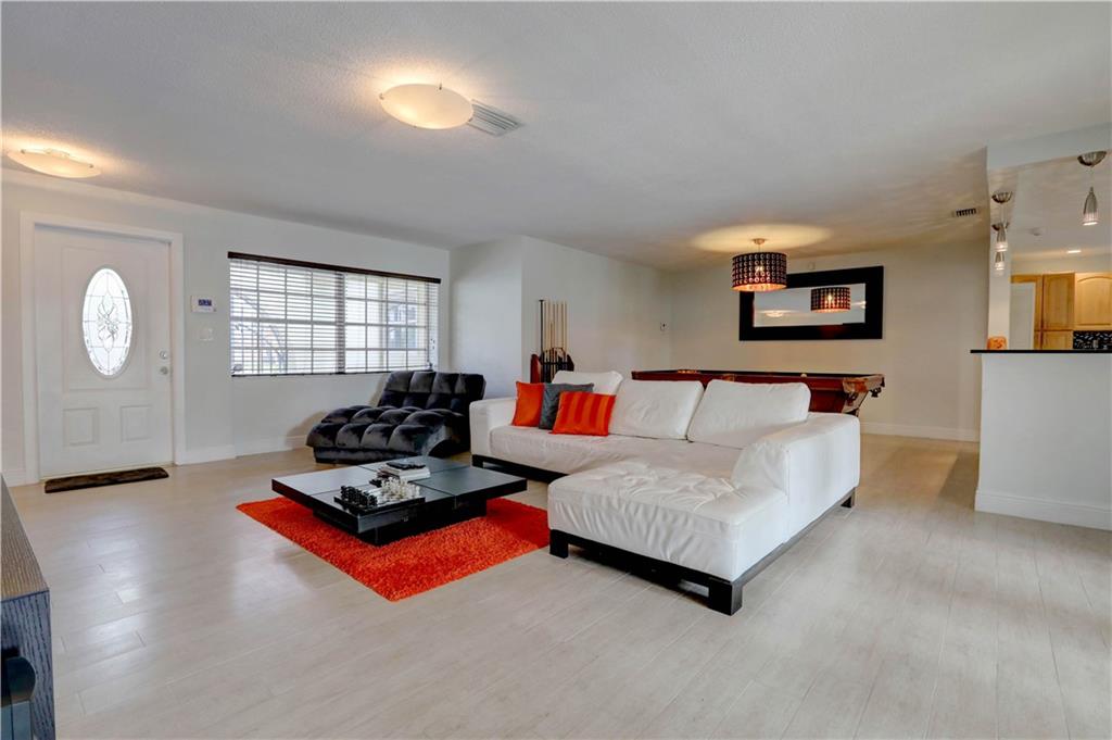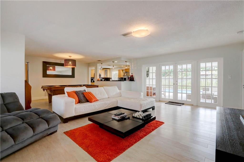 Beautiful fully remodeled 3/2 home in Sunrise Golf Village! Very spacious open floor plan, new wood like tiles through-out the entire house with large baseboards, updated large eat in kitchen with granite counter-tops, real wood cabinets, all stainless steel appliances, dimming high hat lighting, all lighting replaced through-out the house. Alarm system set up, garage door opener with remote, new gas water heater replaced in 2017. One of the larger lots in the community, room for a boat! House newly painted in 2015! Huge backyard, great for entertaining with re-diamond bright pool in 2016 and remodeled back patio with extended Travertine tiles.