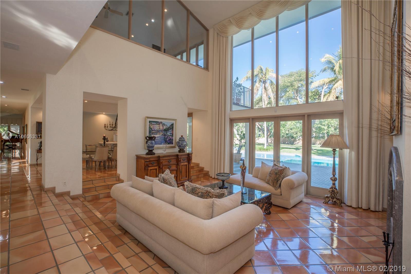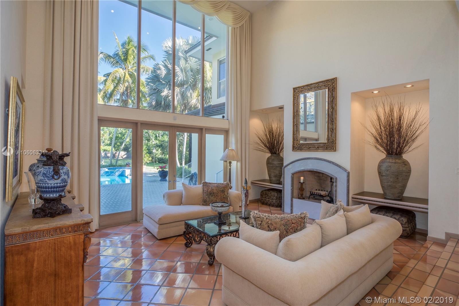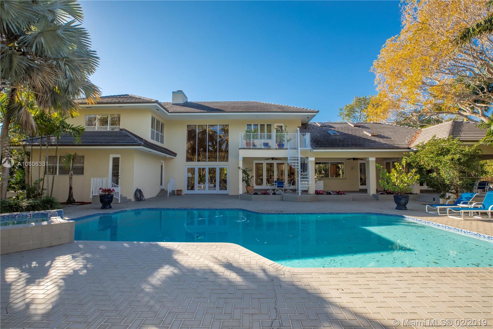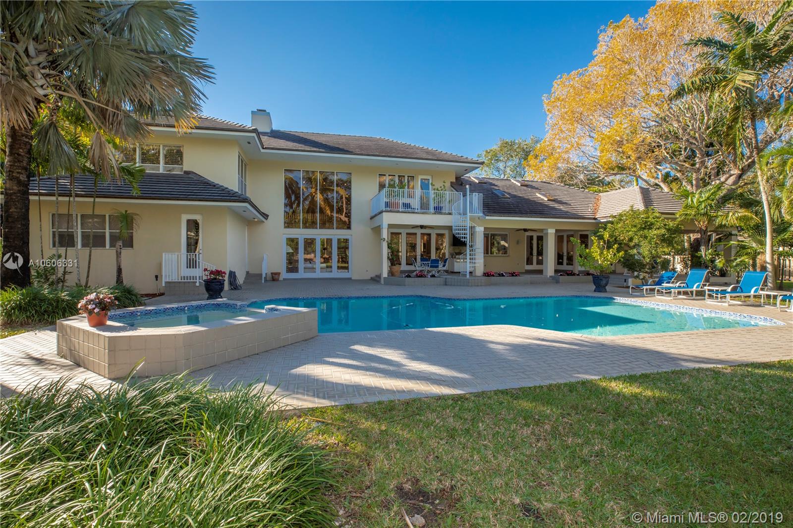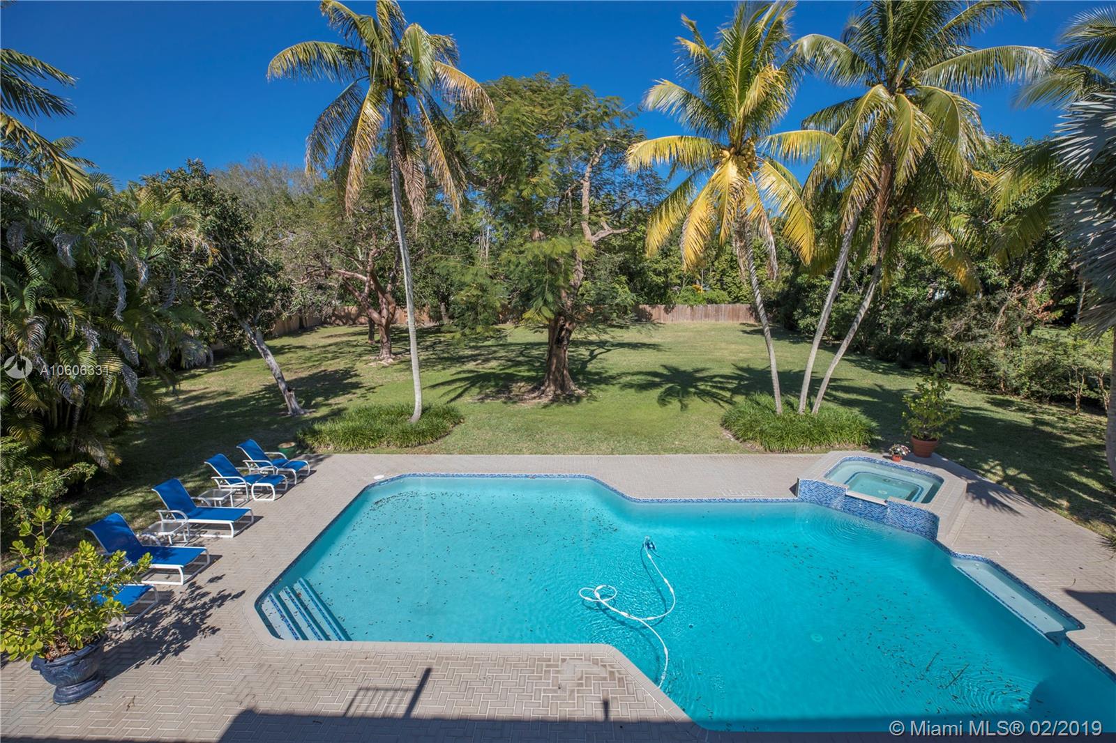 Welcome home to North Pinecrest! Valuable location on quiet street. Pinecrest schools and parks. Custom built in 1990, first time on the market. Walk into the foyer and formal living room, and view the patio, pool and yard through the incredible two-story wall of windows. Room for tennis court on 1+ acre. Spacious home offers 6,236 sq. ft. living area. 4 en-suite bedrooms (theater could be 5th) including a maid's/guest room. Private master suite with sitting area, large master bath, 2 walk-in closets, whirlpool bath. 8' door height throughout home. Sunny kitchen with huge island and breakfast nook. Special features include custom marble fireplace, bright office or library w/ 1/2 bath and private terrace, great family room w/ wet bar, 3-car garage, and 8-seat theater room. A must-see!