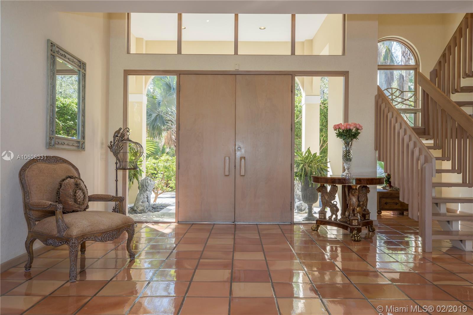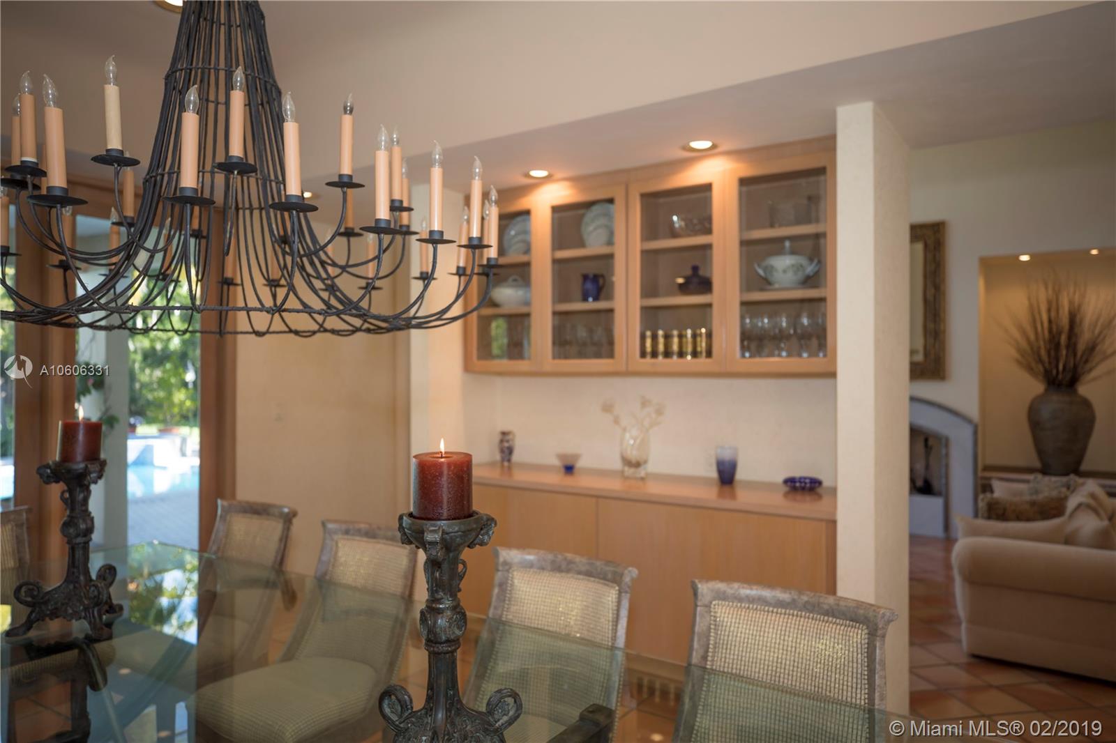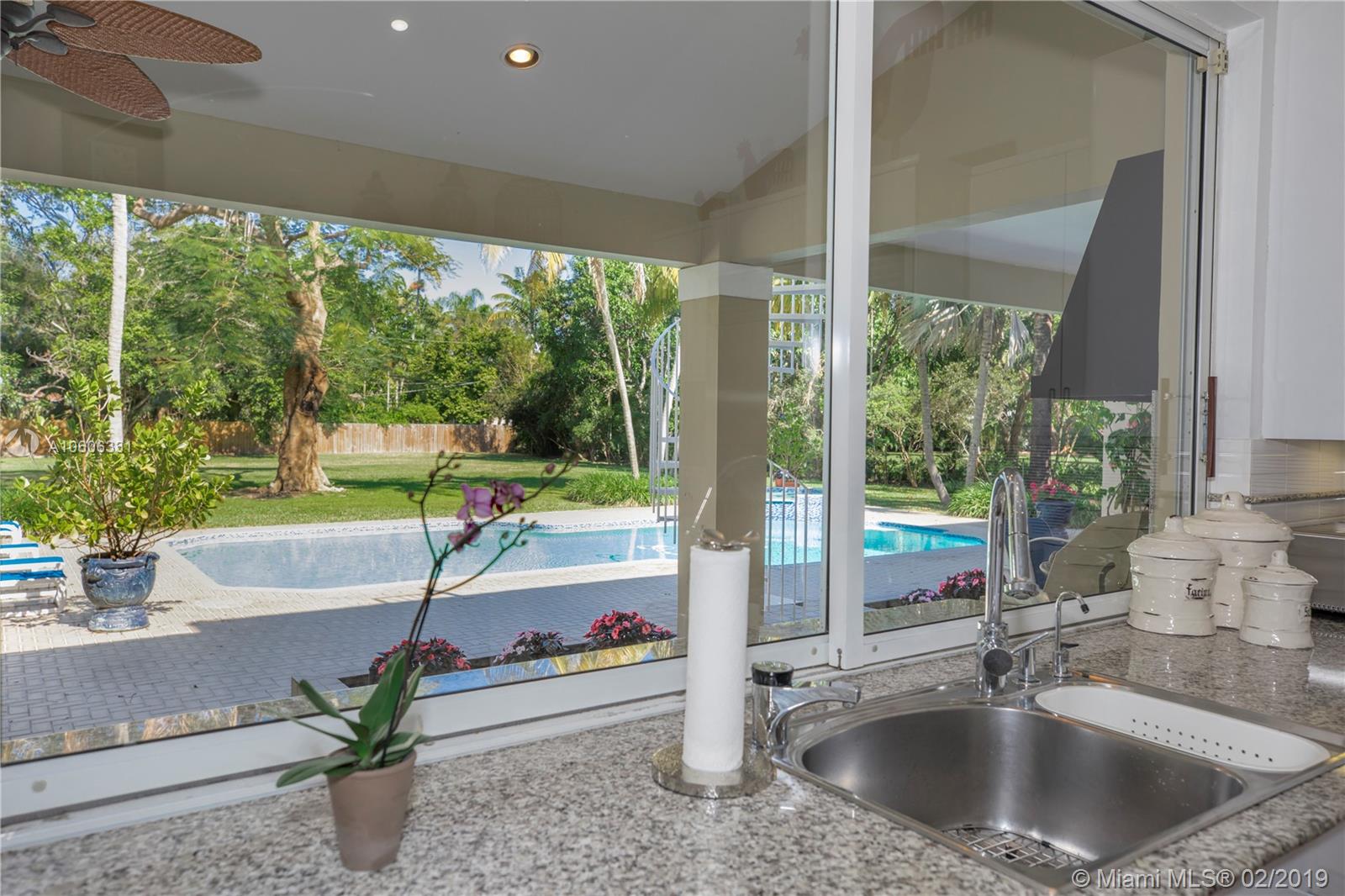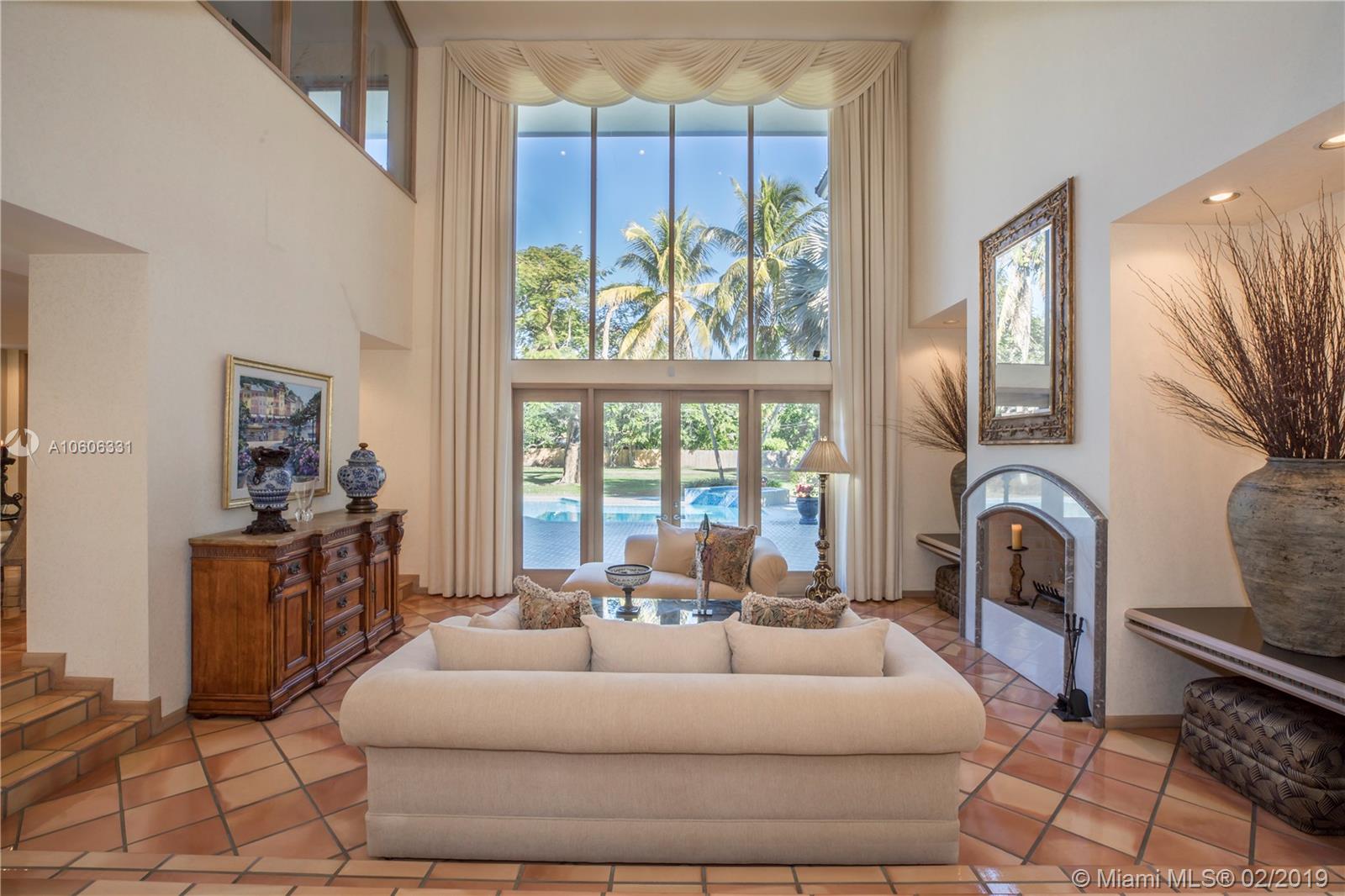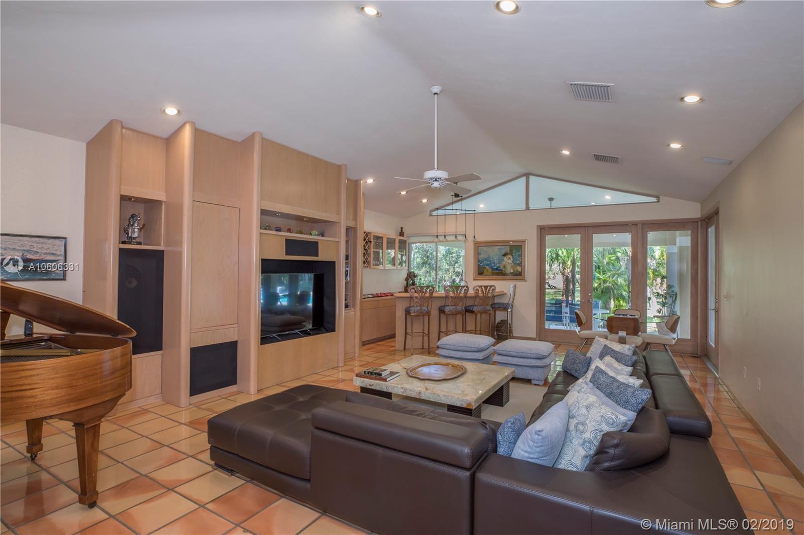 Welcome home to North Pinecrest! Valuable location on quiet street. Pinecrest schools and parks. Custom built in 1990, first time on the market. Walk into the foyer and formal living room, and view the patio, pool and yard through the incredible two-story wall of windows. Room for tennis court on 1+ acre. Spacious home offers 6,236 sq. ft. living area. 4 en-suite bedrooms (theater could be 5th) including a maid's/guest room. Private master suite with sitting area, large master bath, 2 walk-in closets, whirlpool bath. 8' door height throughout home. Sunny kitchen with huge island and breakfast nook. Special features include custom marble fireplace, bright office or library w/ 1/2 bath and private terrace, great family room w/ wet bar, 3-car garage, and 8-seat theater room. A must-see!