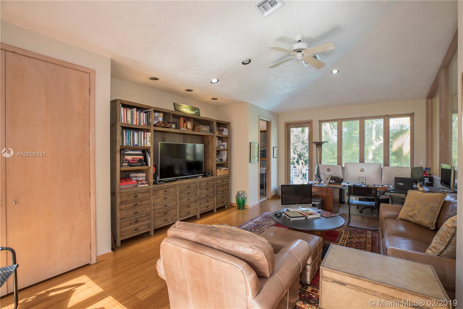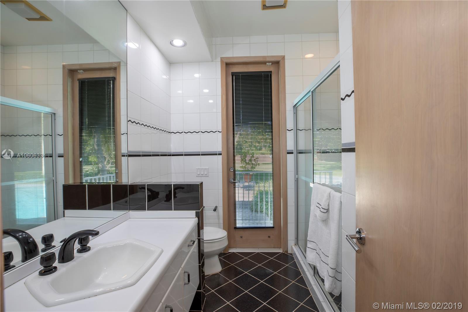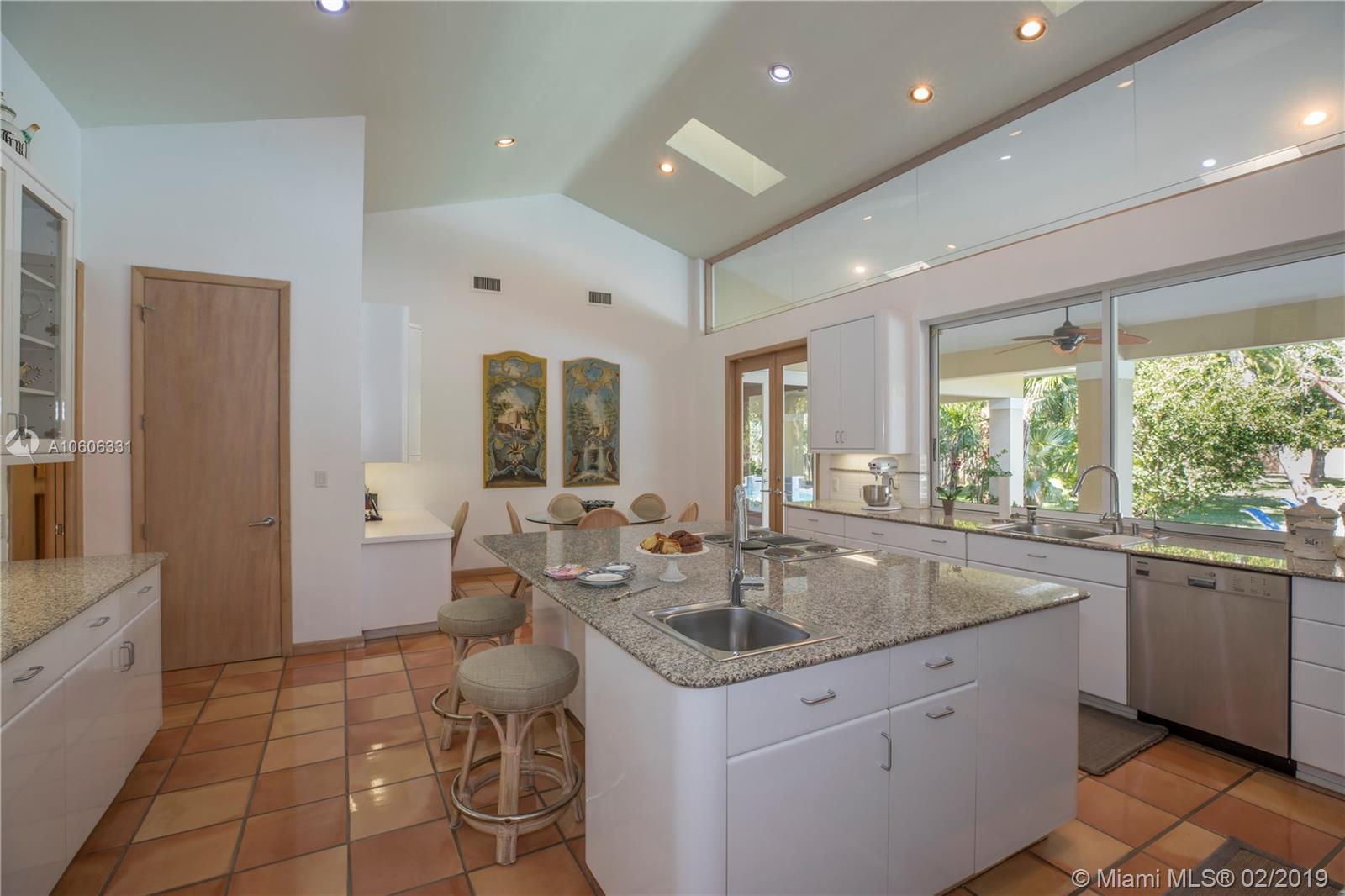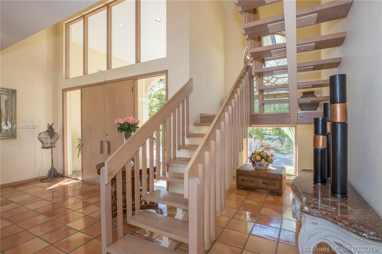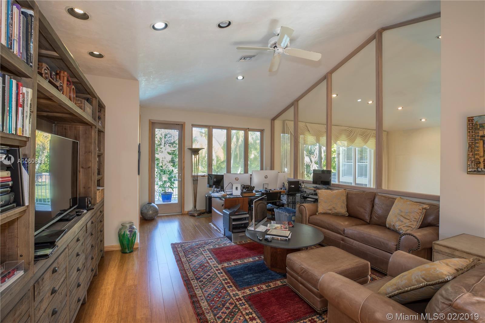 Welcome home to North Pinecrest! Valuable location on quiet street. Pinecrest schools and parks. Custom built in 1990, first time on the market. Walk into the foyer and formal living room, and view the patio, pool and yard through the incredible two-story wall of windows. Room for tennis court on 1+ acre. Spacious home offers 6,236 sq. ft. living area. 4 en-suite bedrooms (theater could be 5th) including a maid's/guest room. Private master suite with sitting area, large master bath, 2 walk-in closets, whirlpool bath. 8' door height throughout home. Sunny kitchen with huge island and breakfast nook. Special features include custom marble fireplace, bright office or library w/ 1/2 bath and private terrace, great family room w/ wet bar, 3-car garage, and 8-seat theater room. A must-see!
