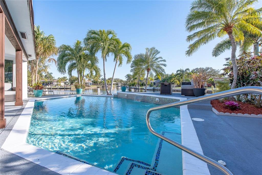 Imagine living in this spectacular waterfront pool home w/a drop dead view looking straight down a wide canal in a friendly, neighborly & quiet part of prestigious Imperial Point. This home has upgrades galore w/a fully-equipped gourmet chef SS kitchen & a gigantic quartz island perfect for entertaining friends & family. There are 2 luxurious bathrooms, cement tile roof, new electrical & plumbing, impact windows/doors, new HVAC system, irrigation system, surveillance, custom closets throughout & a 2-car garage. Beautifully landscaped w/a private backyard opening up to an expansive, breathtaking solar heated saltwater pool & peaceful intersecting canal water views. Dock your boat at home. Watch beautiful evening sunset views. This is a one-of-a-kind residence. Bring your fussiest buyers.