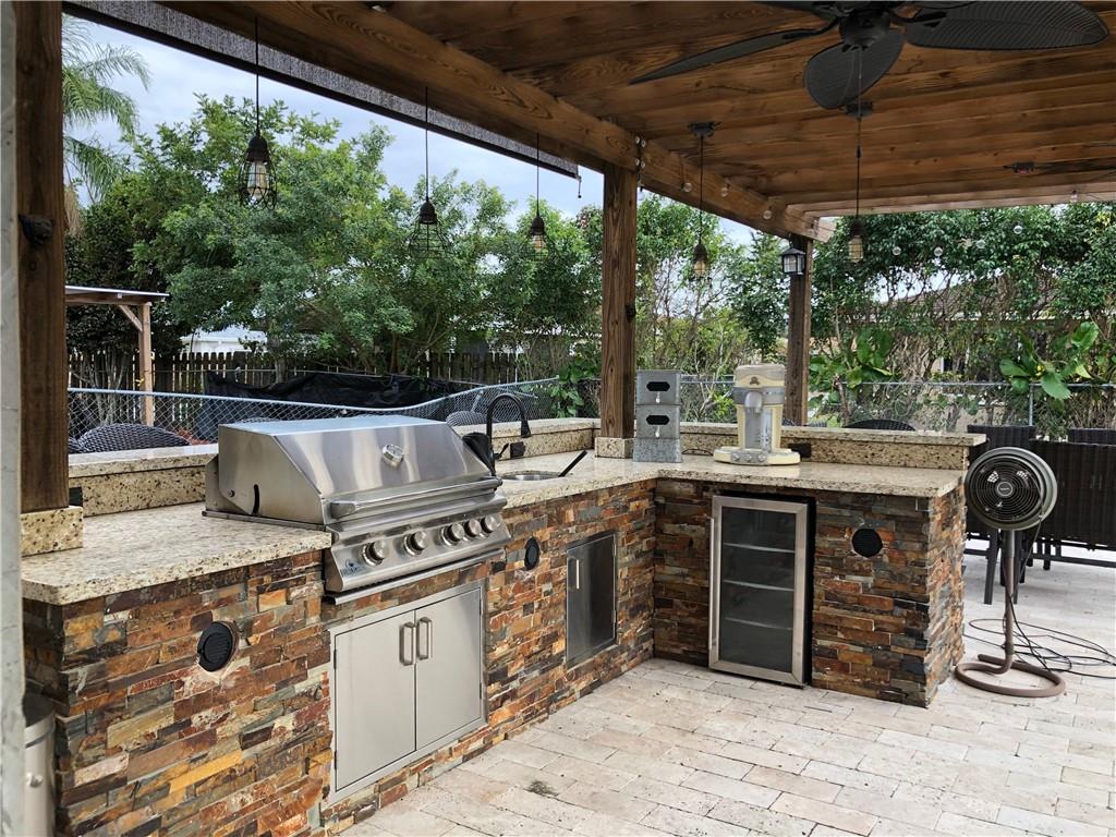 Beautiful 3/2 family home in popular West Boca. In the kitchen you will find granite countertops with stainless steel appliances. A spacious living/dining area with tile throughout. Perfect home for entertaining with an open floor plan that flows to a stunning outdoor kitchen. Private fenced yard with plenty of room for a pool. A storage shed will be added to yard to make up for converted garage. The A/C and roof were replaced in 2014. Very low HOA fees for a West Boca home! Quiet neighborhood with excellent A rated schools. This one is a MUST see!