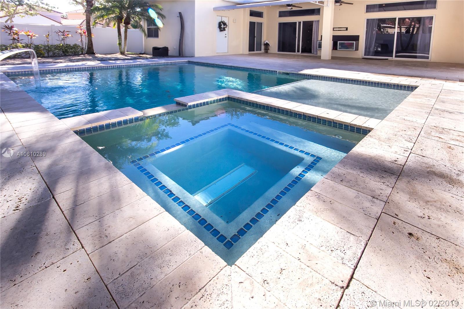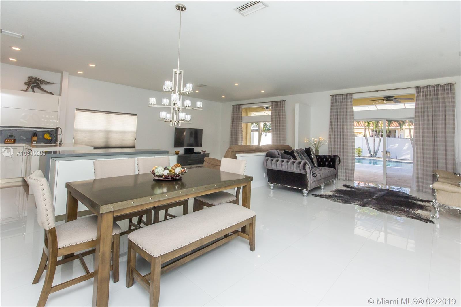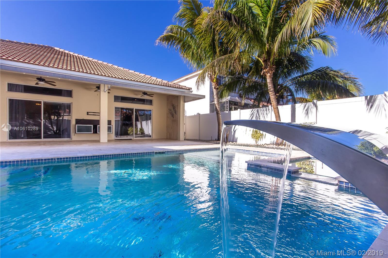 The spectacular house of your dreams!!!, impeccable one story home in a corner lot located at the exclusive community of The Meadows spacious open floor plan for entertaining and family living, with the latest and unique upgrades, high ceilings plenty of natural light, 24 x 24 white glaze porcelain tiles throughout. Elegant home with 3 bedrooms with a new and modern hardwood floor plus den/office, 2 full bathrooms and half bath. High-end kitchen with stainless steel appliances, built in coffee station, grey - high gloss cabinets, and quartz counter-tops. Huge lot with 7,472 sf with private patio white vinyl fence, infinity pool an adjacent Jacuzzi with a waterfall feature. hurricane shutters gated Weston community with "A" rated school.