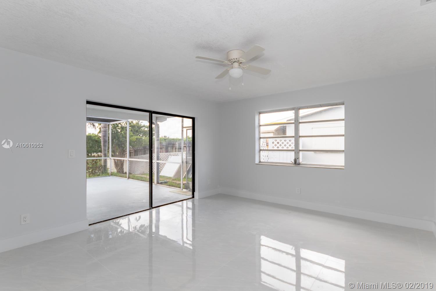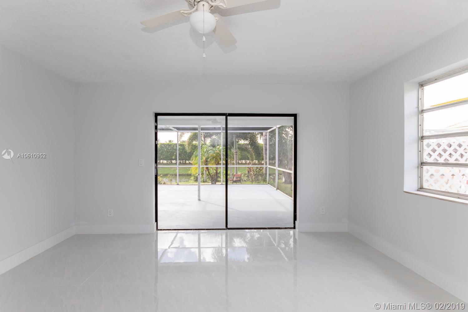Lovely 4B/2b spacious, well lit, canal property in Pembroke Pines with newly renovated 32”-tile floors throughout the entire home. Brand new kitchen cabinets, sink, faucet and quartz counter tops with high-end stainless steel appliances and in-kitchen dining island. Walk-in closet in MBR. Brand new faucets, sinks, quartz countertops, cabinets, showers, etc., in both bathrooms. Interior and exterior paint and landscaping. In-garage laundry room (new washer & dryer) under AC. 2-car garage with storage racks, 2-car driveway. Triple-access to partially covered, fully screened patio and a walkway to the canal. Yard-space large enough to park a boat