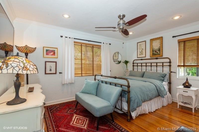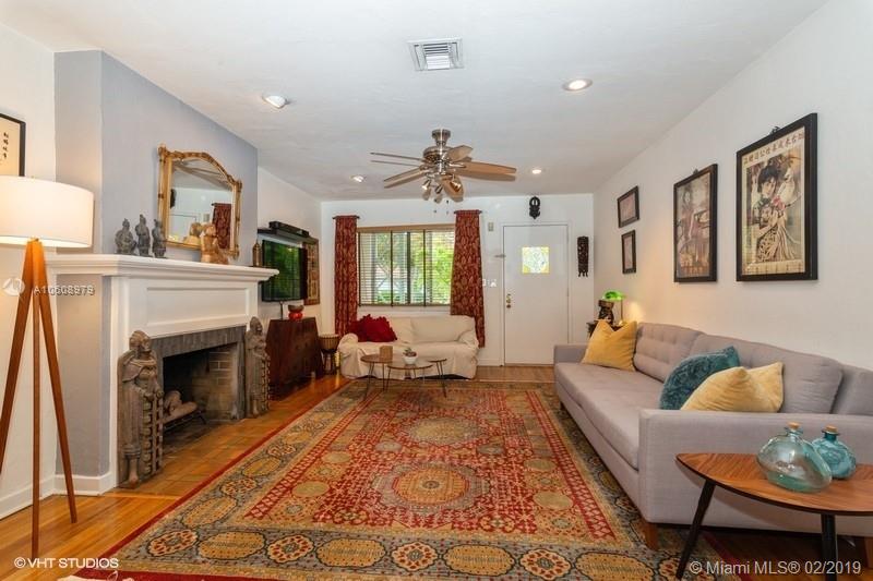 Location and Charm. Fantastic opportunity to live on a quiet tree-lined street in walking distance to downtown Coral Gables restaurants, shops, Country Clubs & more. 1940's home on 8250 SF lot, with new saline pool, all new plumbing, beautiful spacious yard, hardwood floors, & wood burning fireplace. Great one story floor plan, with separate dining room & family room, and plenty of space for an addition if desired. Enjoy the Gables at an affordable price and walk to dinner without the hassle of parking!