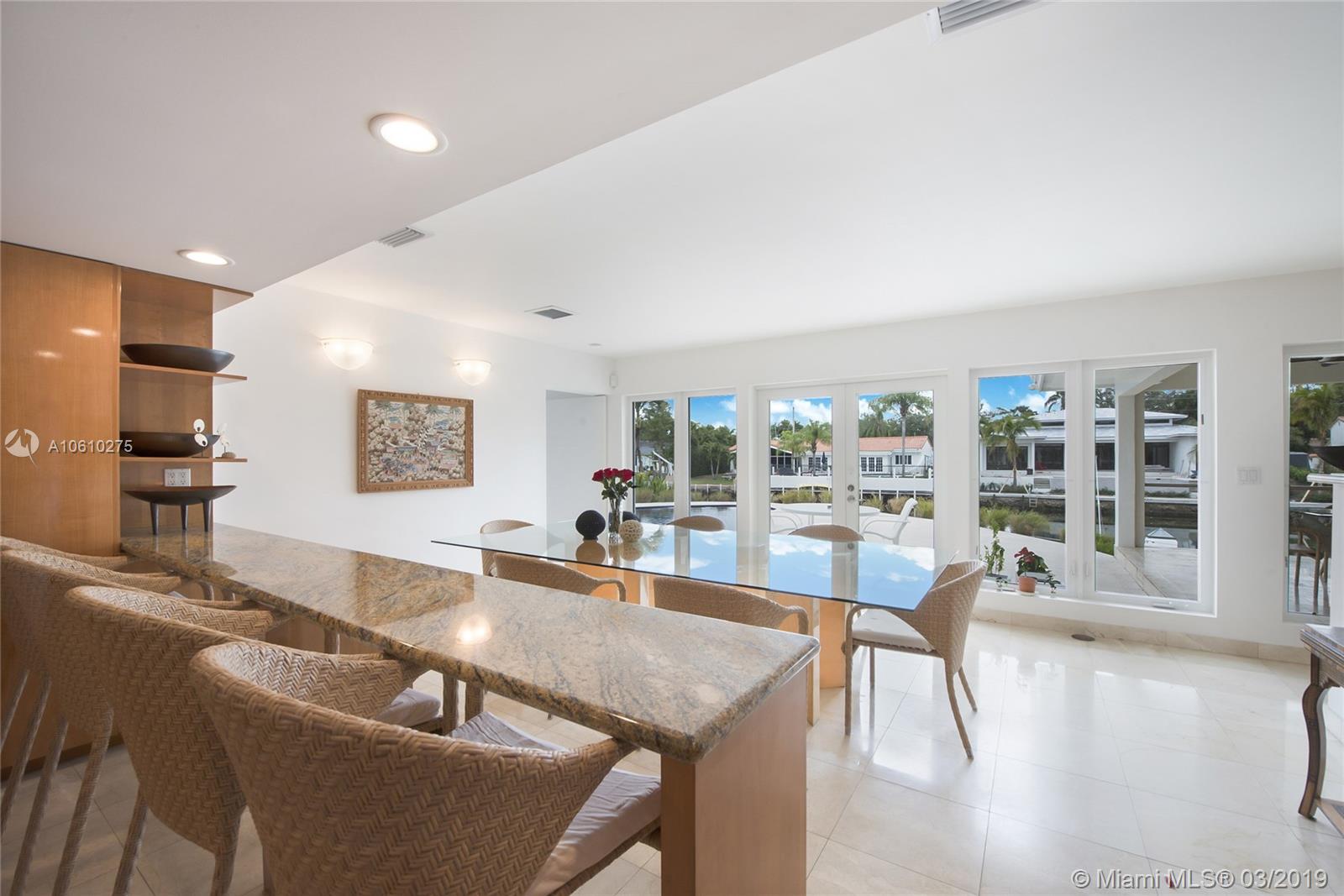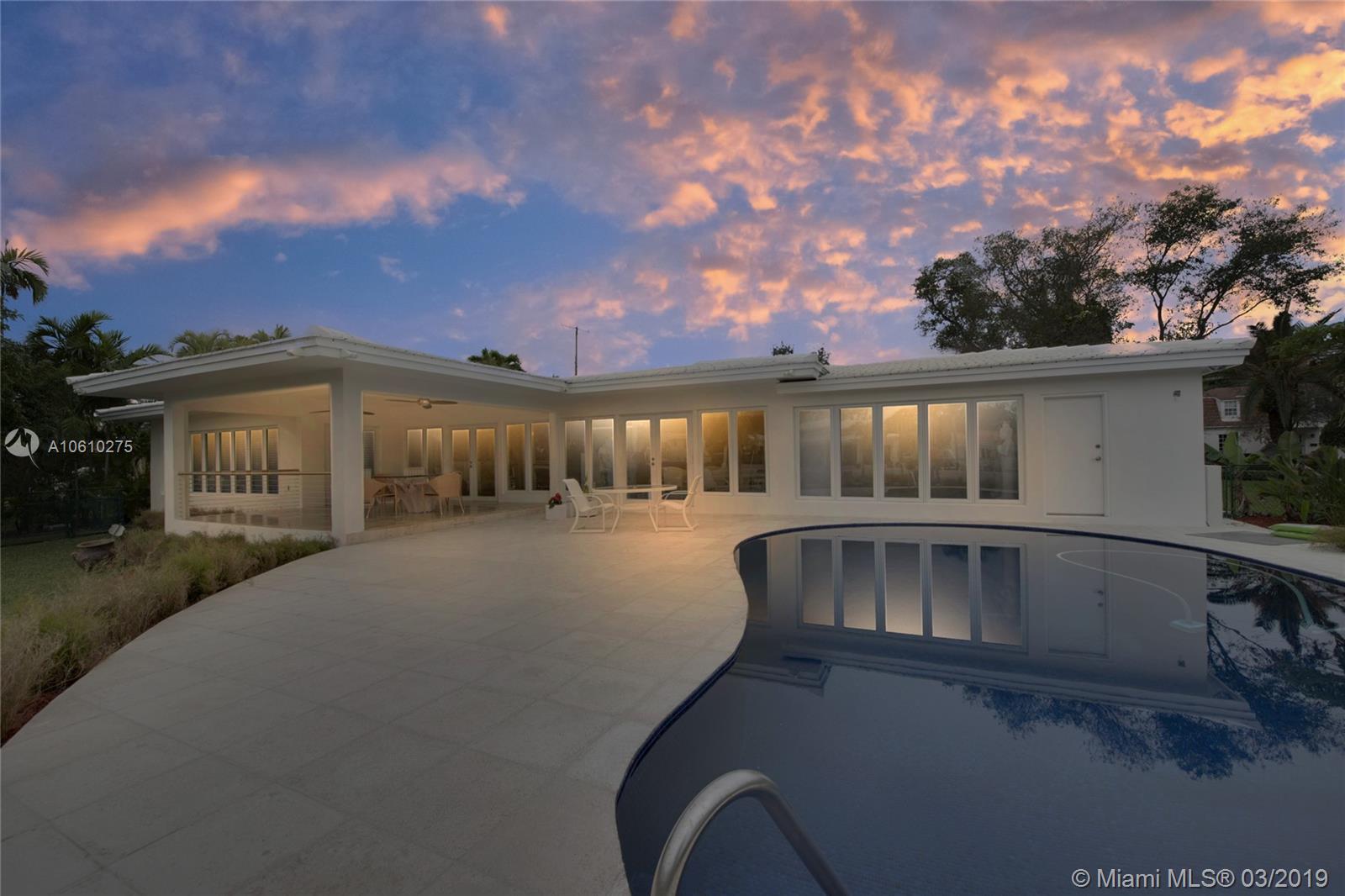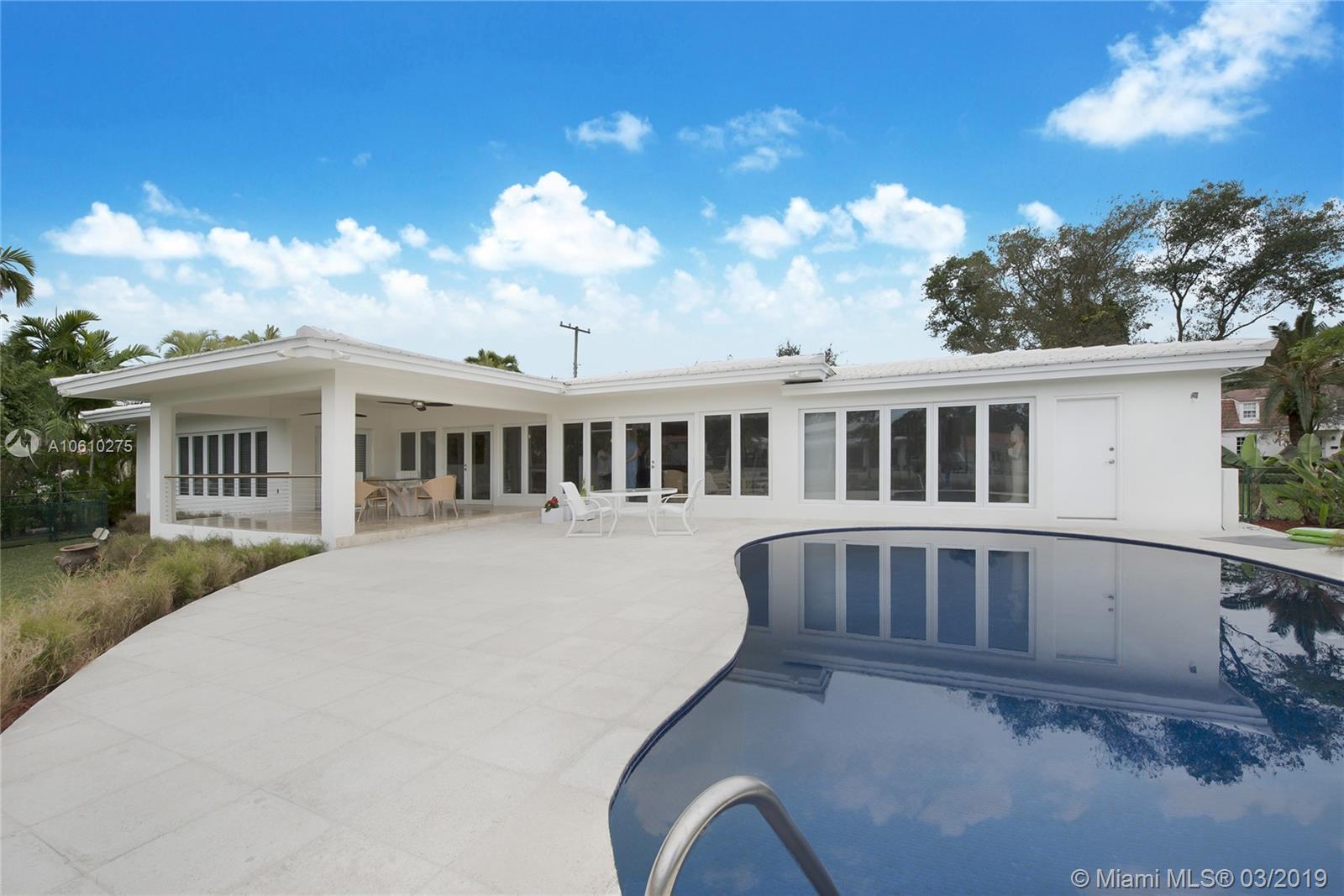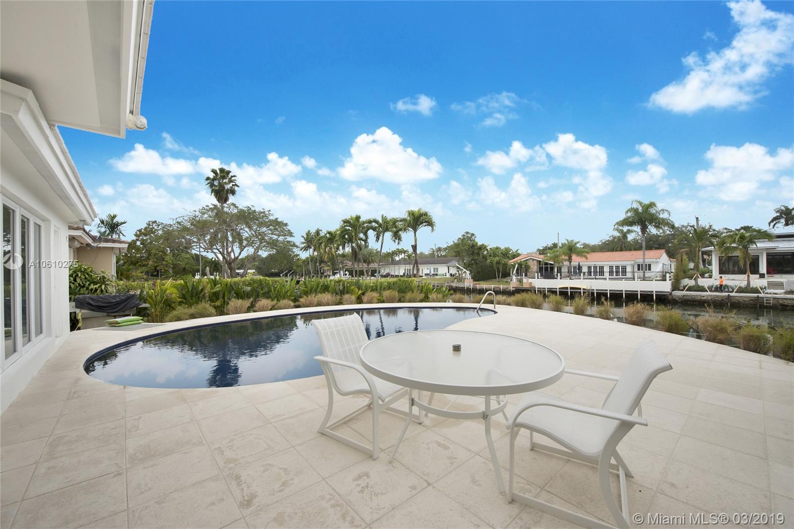 Fabulous waterfront home,fully remodeled & expanded in 2004 by owner-architect to enjoy the Florida waterfront lifestyle & maximize water views from walls of French doors & windows along the entire back of the home.Open spaces w/bright interiors refreshed & updated in 2018/19.The great room,kitchen dining area are framed by expansive water views & open to the covered terrace & pool.With a 4 way split plan,all 4 bedroom suites enjoy privacy.The spacious master suite has panoramic views of the waterway.Sleek seamless custom kitchen cabinetry,including an eat-in counter,is timeless in design & function,w/a mirror backsplash reflecting water views.The lawn slopes down to private dock on 105 ft of waterfrontage.NE back exposure allows yr round enjoyment of the outdoor living spaces.Fruit trees.
