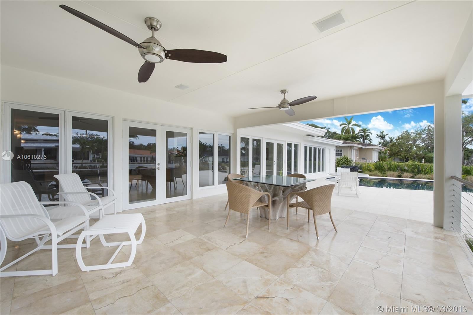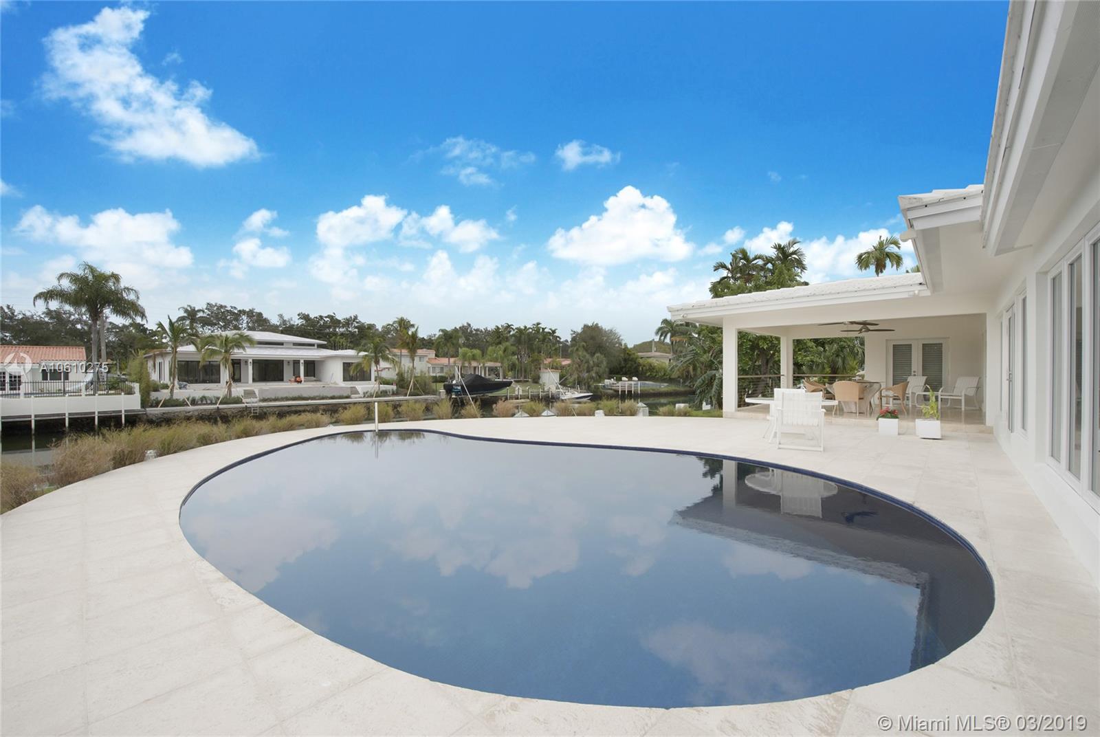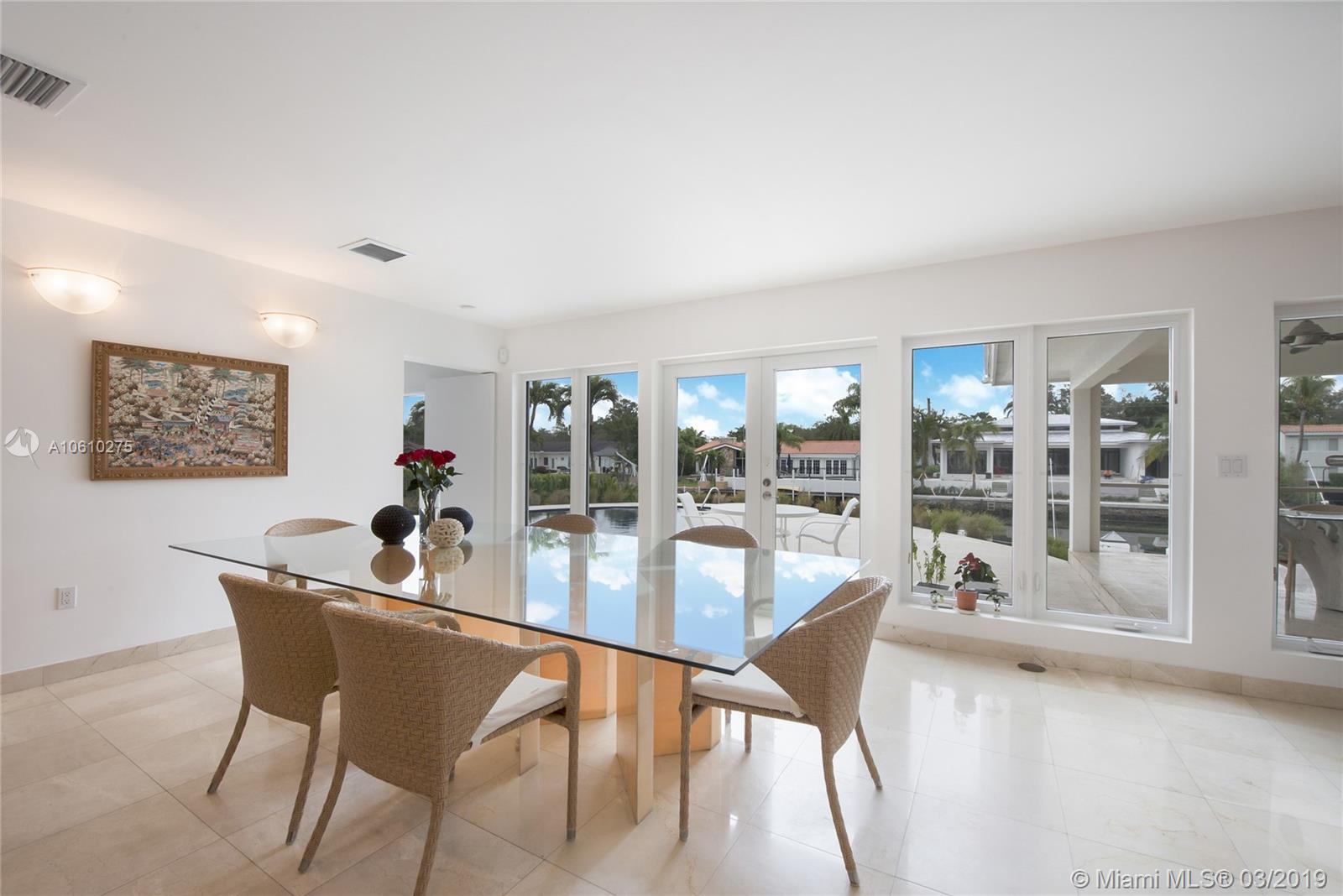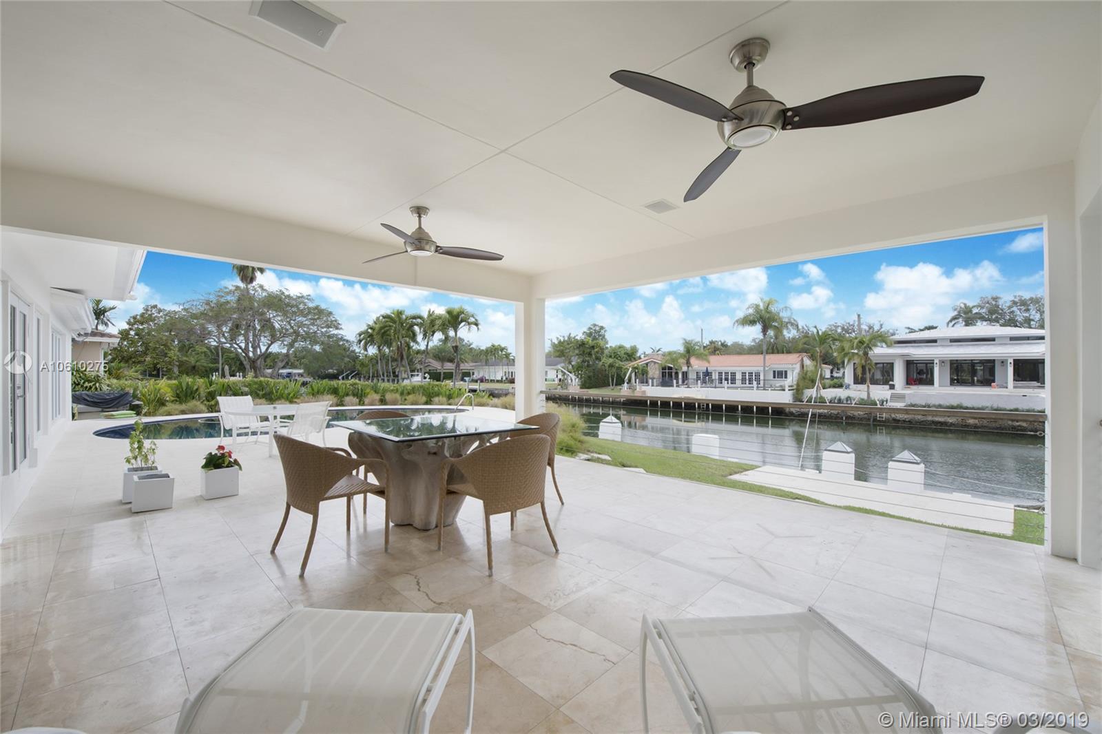 Fabulous waterfront home,fully remodeled & expanded in 2004 by owner-architect to enjoy the Florida waterfront lifestyle & maximize water views from walls of French doors & windows along the entire back of the home.Open spaces w/bright interiors refreshed & updated in 2018/19.The great room,kitchen dining area are framed by expansive water views & open to the covered terrace & pool.With a 4 way split plan,all 4 bedroom suites enjoy privacy.The spacious master suite has panoramic views of the waterway.Sleek seamless custom kitchen cabinetry,including an eat-in counter,is timeless in design & function,w/a mirror backsplash reflecting water views.The lawn slopes down to private dock on 105 ft of waterfrontage.NE back exposure allows yr round enjoyment of the outdoor living spaces.Fruit trees.