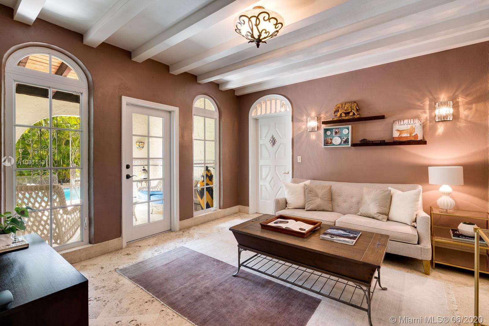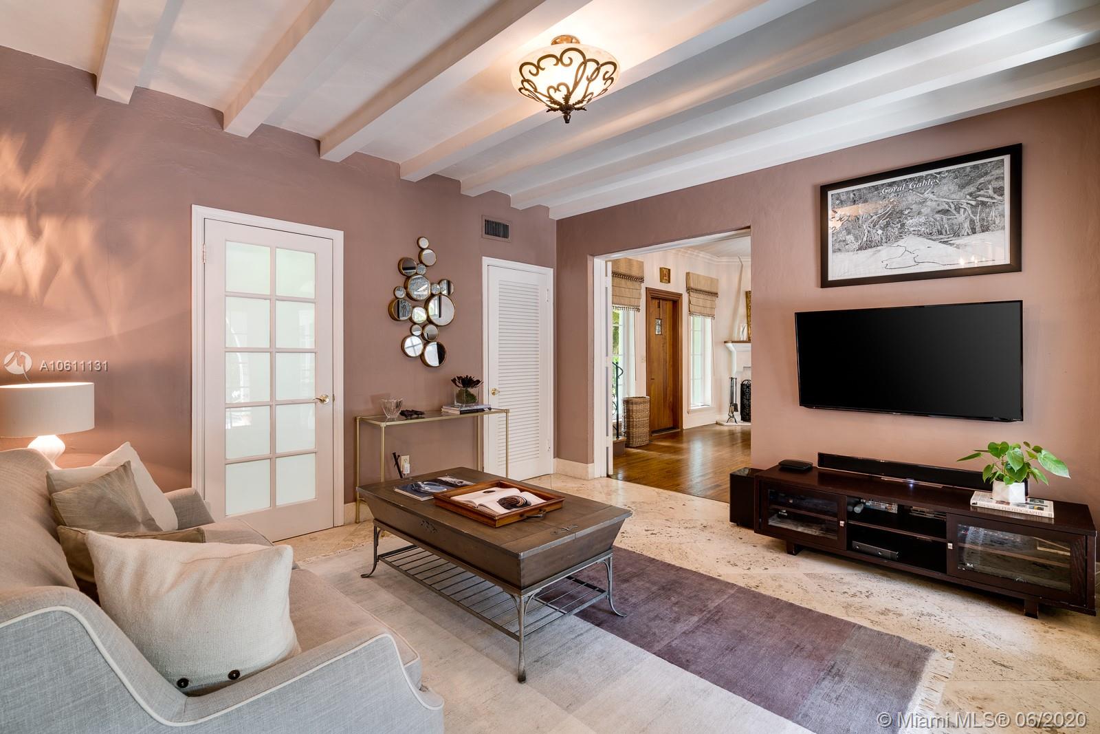 Mediterranean Revival with Style & Grace Elegantly updated in 2017, historic architectural landmark commissioned by George Merrick and designed by L.D. Brumm in 1924. Upon entering the mahogany front door, you're welcomed into an open foyer with a wood burning fireplace, solid h/wood floors and generous natural light flooding in from the dining room doors. Highlights include eat-in kitchen, industrial-sized Vulcan gas stove/ovens, private upstairs master suite with custom etched glass window and rear balcony, impact windows and doors, over sized pool and handmade Colombian barrel tile roof. Every room has ample closet space and en-suite bathrooms. Fully landscaped grounds compliment the breathtaking canopy of banyan trees along Columbus Blvd. 4330 sq ft. and 16,000 sq. ft. lot.