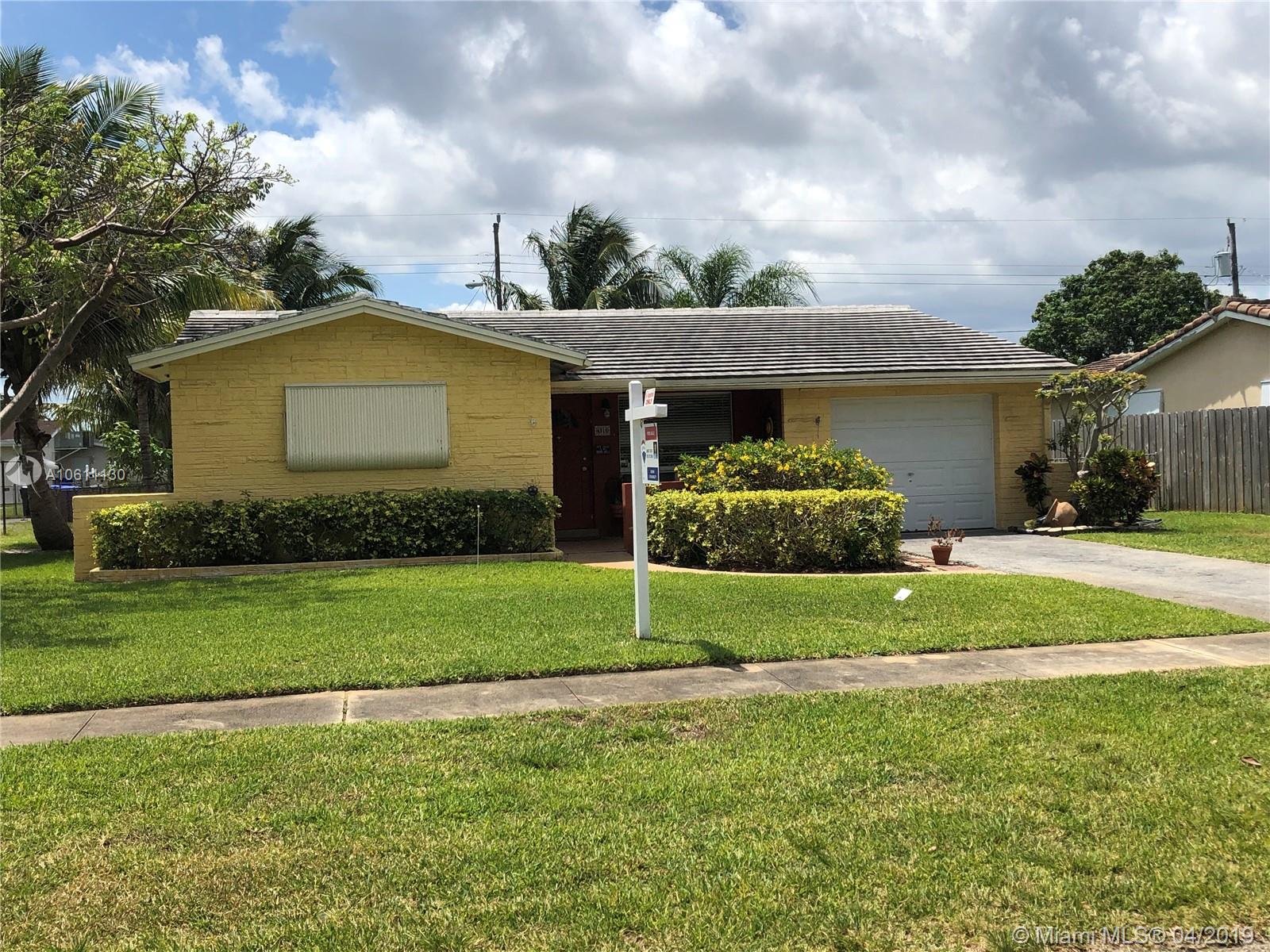 Beautiful and Spacious 3 Bedroom, 2 Bath home is located on a beautiful street in Hollywood Hills. This well maintained home features updated kitchen and bathrooms, large bright Florida room, living room & dining room, 1 car garage, large separate laundry room with Utility sink and newer washer. Nice patio in rear great for entertaining. Large fenced in backyard with room for a pool. Beautiful Tile floors throughout, fans, crown molding, Roof done with permit 2011. Centrally located close to all major highways and downtown Hollywood, 15 Minutes to the beach.