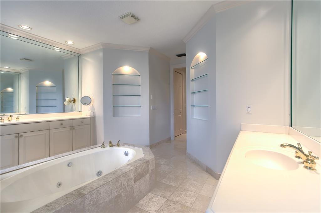 COMPLETELY REFRESHED AND READY TO MOVE IN! CLASSIC ONE STORY WATER FRONT HOME WITH 3 CAR GARAGE SITUATED IN QUIET CUL DE SAC*NEW EXTERIOR AND INTERIOR PAINT*UPDATED WHITE KITCHEN W DOUBLE OVENS AND 42" BUILT IN REFRIGERATOR*POLISHED MARBLE FLOORS THROUGH OUT MAIN LIVING AREAS*HUGE MASTER SUITE WITH MARBLE MASTER BATH COMPLETE WITH TWO CUSTOM WALK IN CLOSETS*OPEN FLOOR PLAN*PLANTATION SHUTTERS*UPGRADED TRANE AC UNITS*NEW HOT WATER HEATER*NEW WASHER AND DRYER*SPECTACULAR REMODELED HEATED SALT POOL AND SPA WITH FOUNTAINS*OVERSIZED PAVER PATIO WITH LOTS OF ROOM FOR ENTERTAINING AND COVERED PERGOLA*LUSHLY LANDSCAPED PRIVATE SETTING WITH GREAT WATERVIEWS*COME SEE TODAY YOU WON'T BE DISAPPOINTED*EASY TO SHOW!
