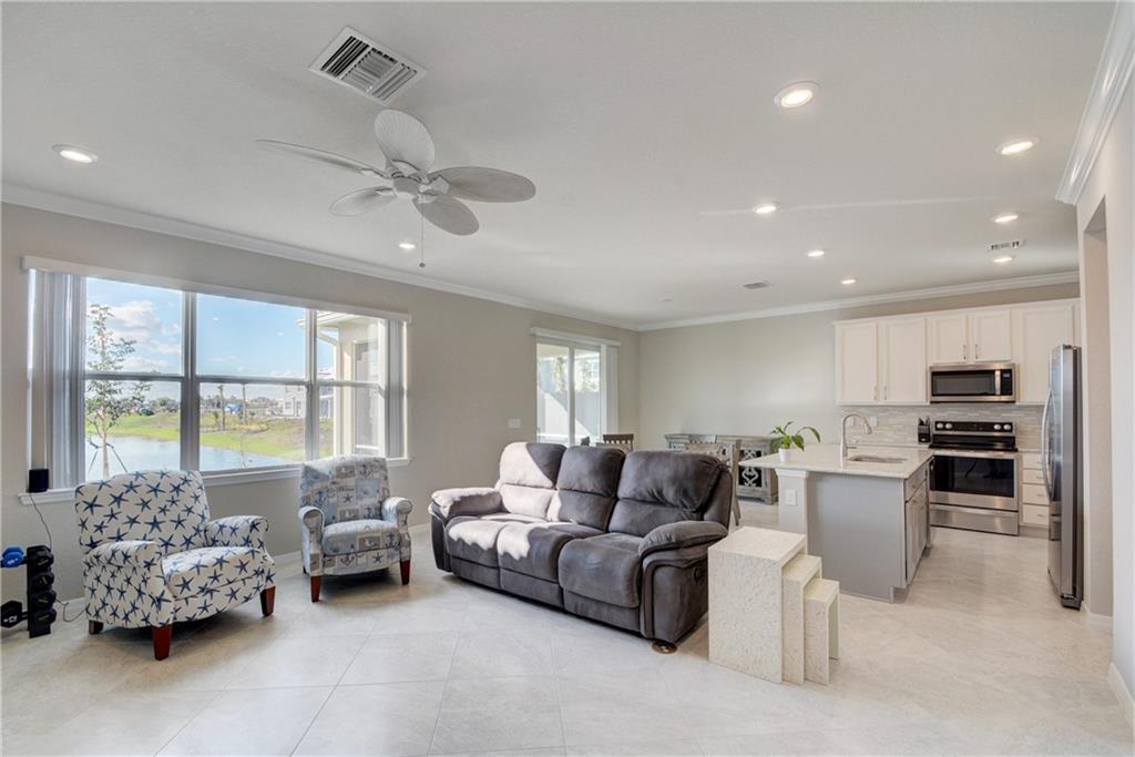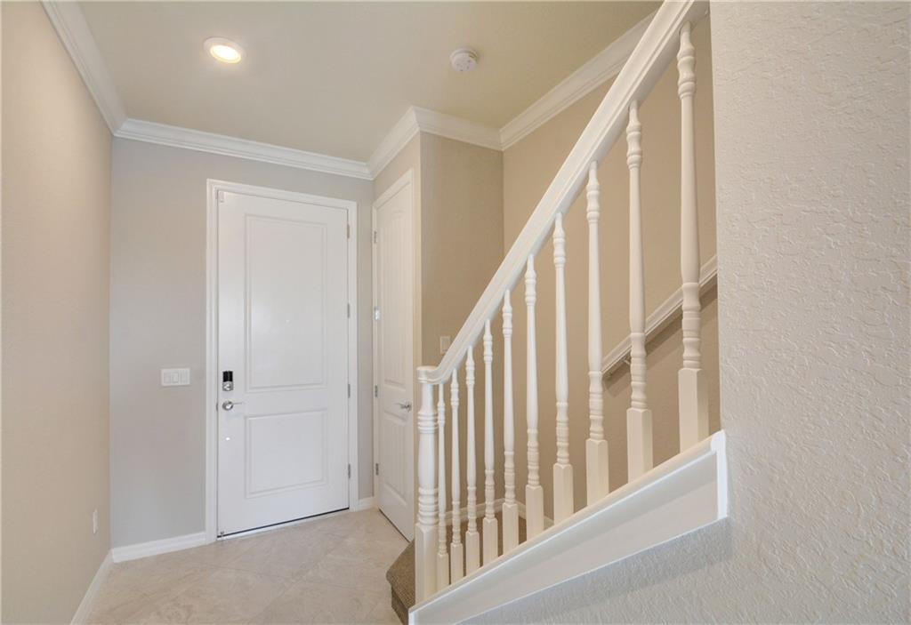 This Raritan Model by Pulte homes has over $36,000 in interior improvements including the screened in lanai! Enjoy the sunsets over the long view of the lake. Also added were 8' doors, crown molding, impact windows, upgraded tile, carpet and Sherwin Williams grey paint throughout. New ceiling fans and blinds have been added. Vivint smart home security and technology is already set up. Includes smart panel, motion detector, seven door and window sensors, doorbell camera, smart locks and smart home thermostat. Upgrades and floor plan in attachments.