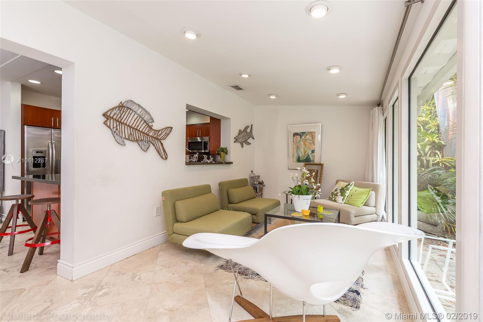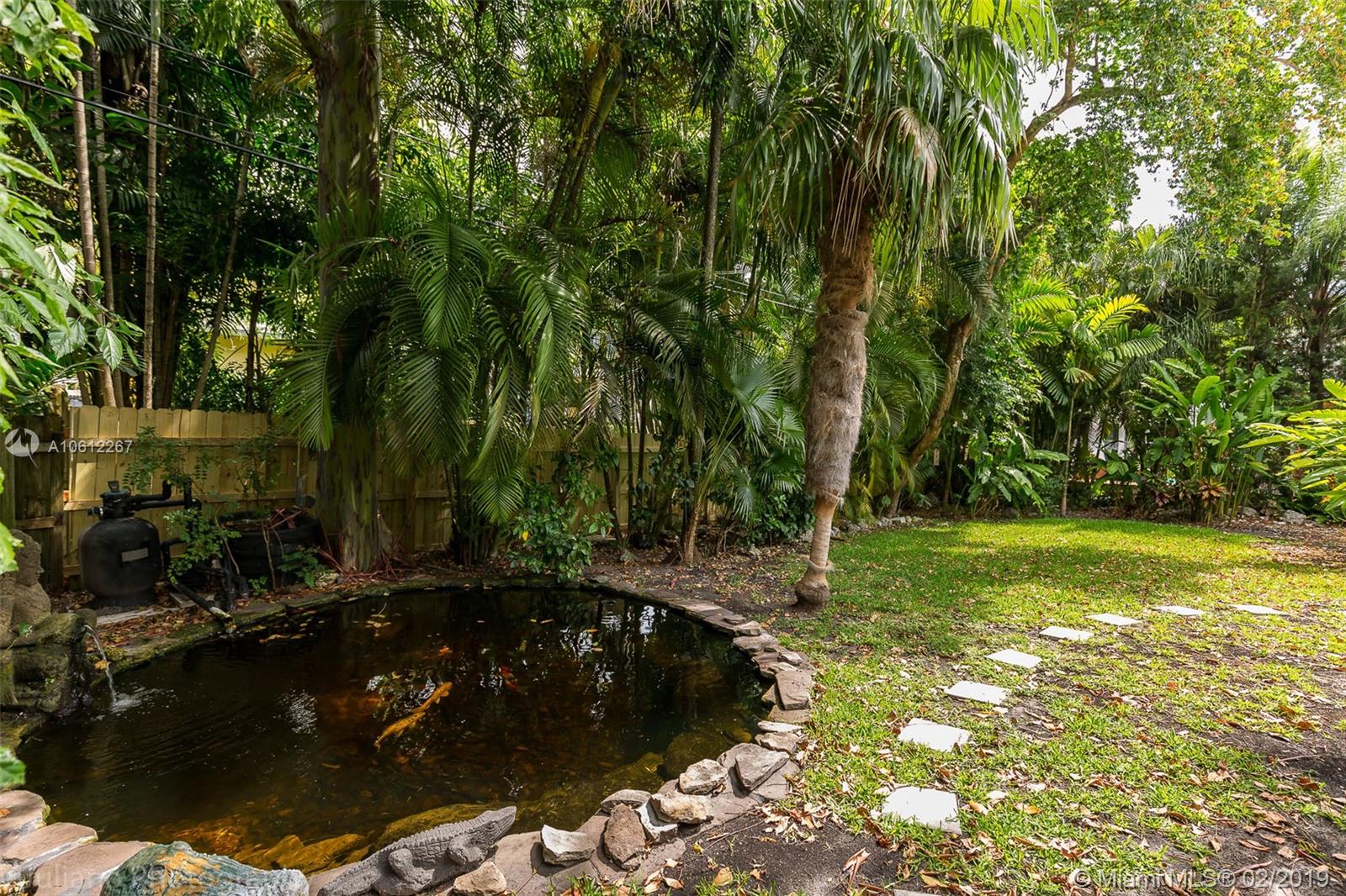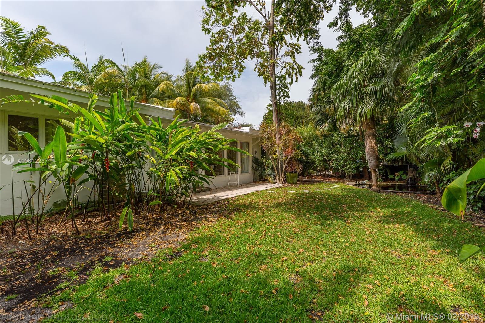 Beautiful Mid-Century Modern home in coveted South Grove neighborhood. Light filled interior spaces w/ white-on-white color palette throughout. Features include stone floors, new marble baths & renovated kitchen w/sleek wood cabinetry, stainless backsplash & high end appliances. Family room w/floor to ceiling windows opens to lush tropical garden w/enchanting Koi pond. Expansive garage w/vaulted wood beamed ceilings has potential to be converted to a luxurious master suite. Close to the Grove village center.