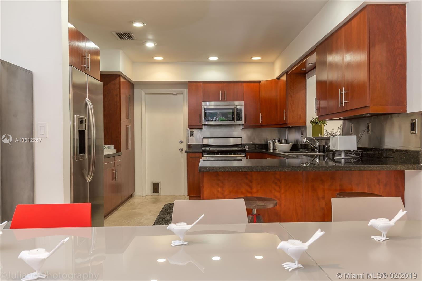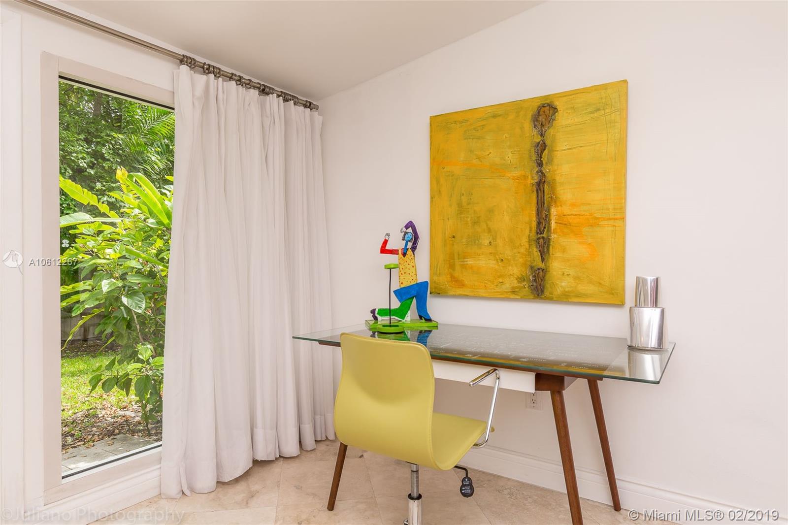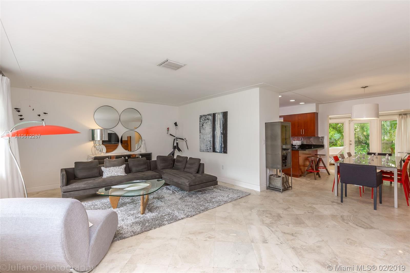 Beautiful Mid-Century Modern home in coveted South Grove neighborhood. Light filled interior spaces w/ white-on-white color palette throughout. Features include stone floors, new marble baths & renovated kitchen w/sleek wood cabinetry, stainless backsplash & high end appliances. Family room w/floor to ceiling windows opens to lush tropical garden w/enchanting Koi pond. Expansive garage w/vaulted wood beamed ceilings has potential to be converted to a luxurious master suite. Close to the Grove village center.