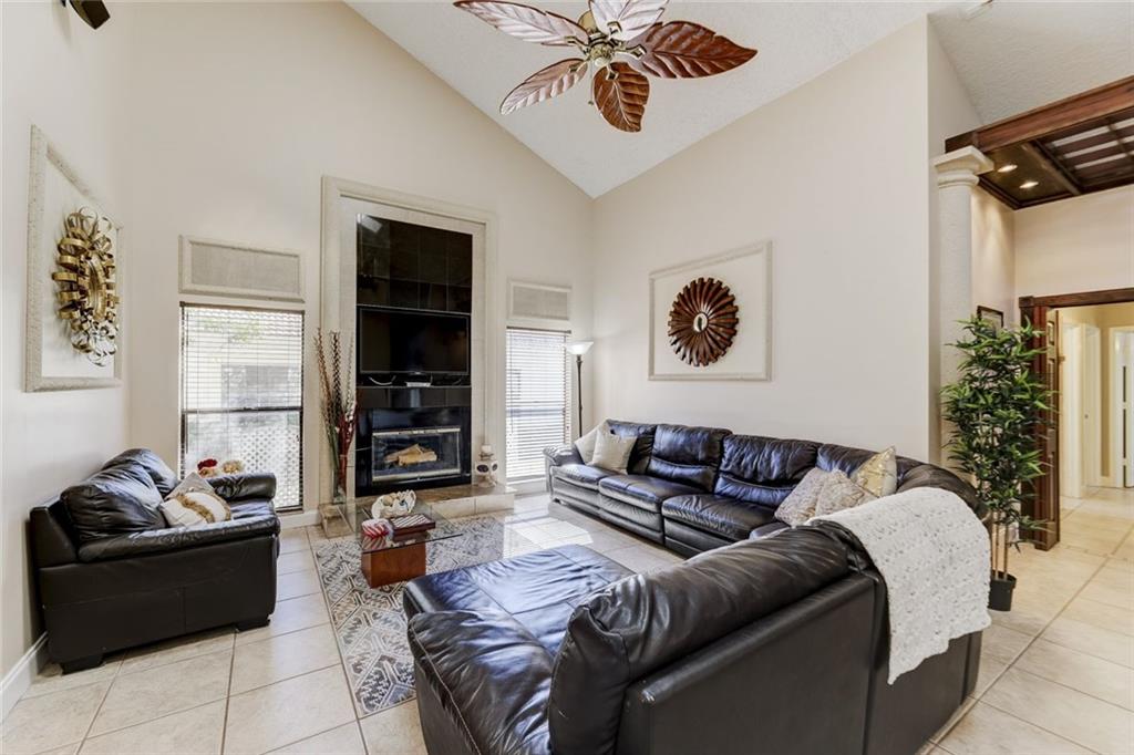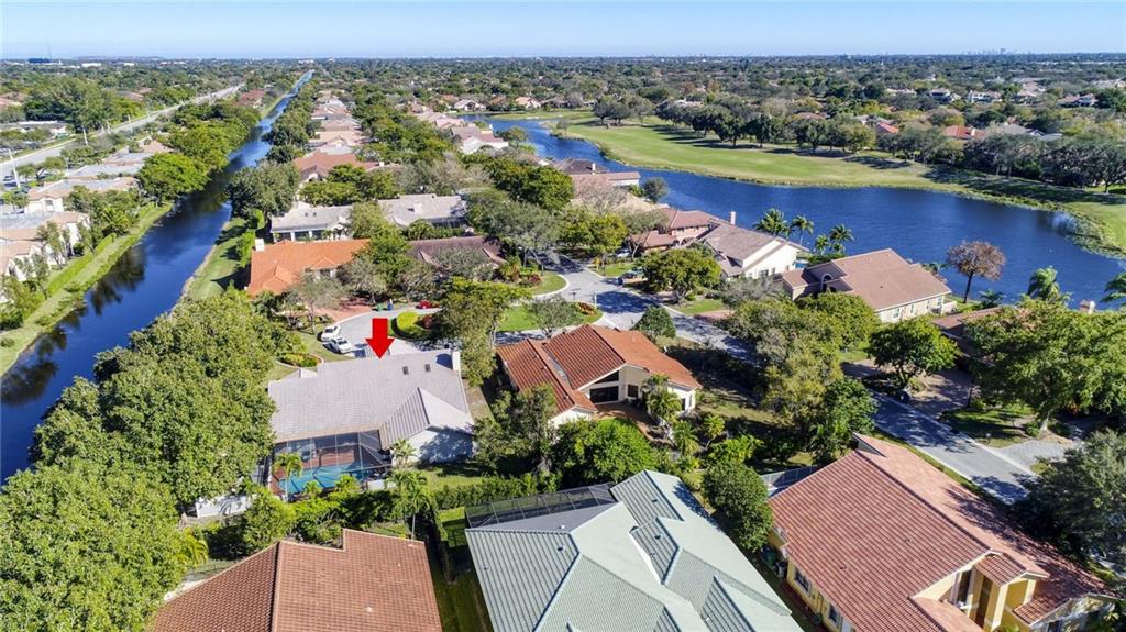 Impressive Contemporary Style Home situated on a Private cul de sac. This 4/2.5 Single Story Tranquil Retreat offers a Fantastic layout which includes a split-bedroom floor plan, Volume ceilings, Large Family room w/fireplace, Eat-in Kitchen w/tons of Cabinet space & New Appliances (2017), Large Owner's Suite w/his & her closets, updated bath & a bonus room perfect for an Office/Exercise Room/Nursery/Meditation Room. Add'l features include New Tiled floors & a Gorgeous Remodeled Cabana Bath (2017). The outside Oasis provides a play area adjacent to the screen enclosure, a Beautiful Sparkling Heated Pool, an Outdoor Shower (hot & cold water BRAND NEW 2018) AND an Outdoor Kitchen w/ a bar, Perfect for Serving and Entertaining! This Fantastic Home is in a Premier Guard Gated Golf community!