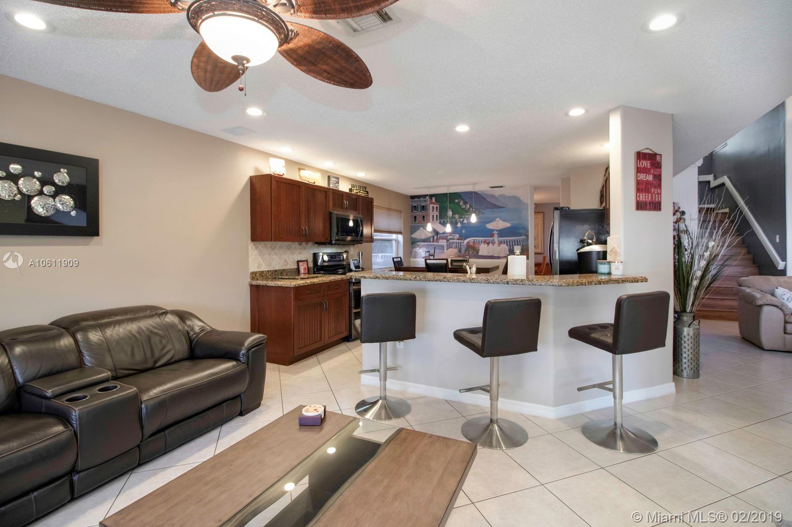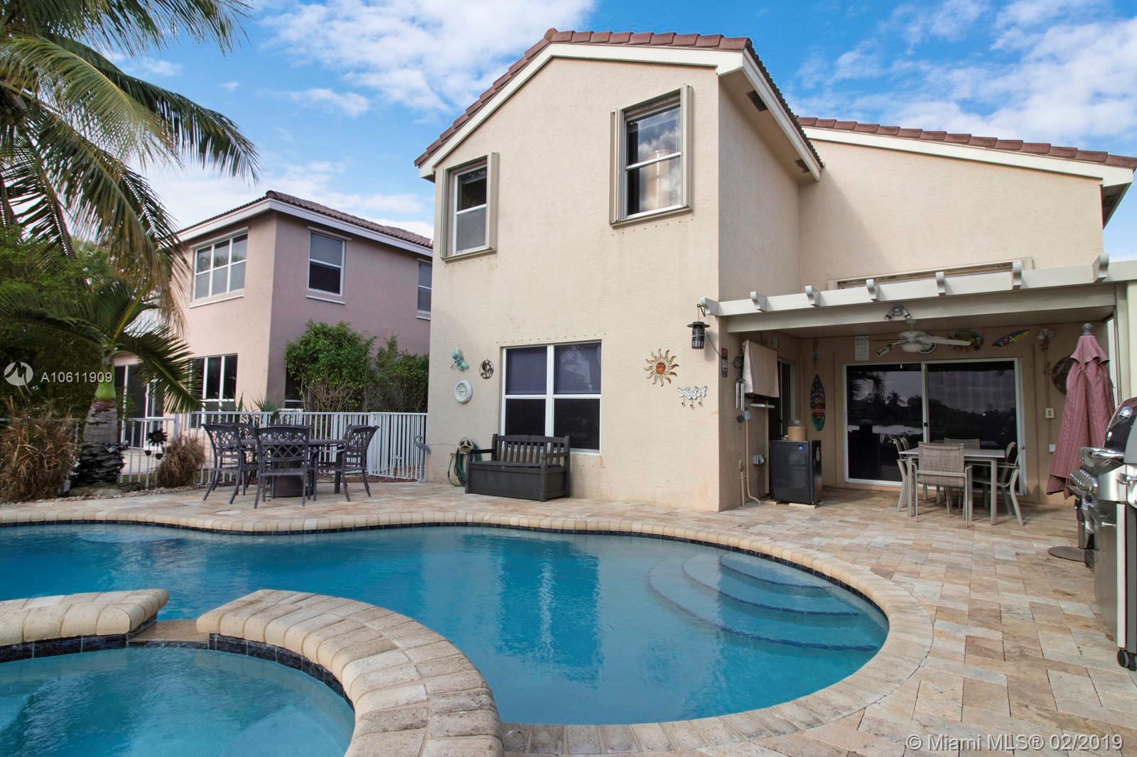 Spectacular Lakefront Home in The Enclave at Wyndham Lakes! This Tropical Oasis is perfect for entertaining! The exterior has a custom heated saltwater pool and patio area overlooking the lake offering the most serene endless views. The interior of this residence features 4 spacious bedrooms, 2.5 bathrooms, a beautifully renovated kitchen with new black stainless steel appliances, wooden cabinets, and granite counter tops, solar powered hot water heater, tile downstairs and wood laminate flooring upstairs, hurricane shutters (new accordion shutters on upstairs windows), 2 car garage, covered patio area, and a new pool pump and salt generator.