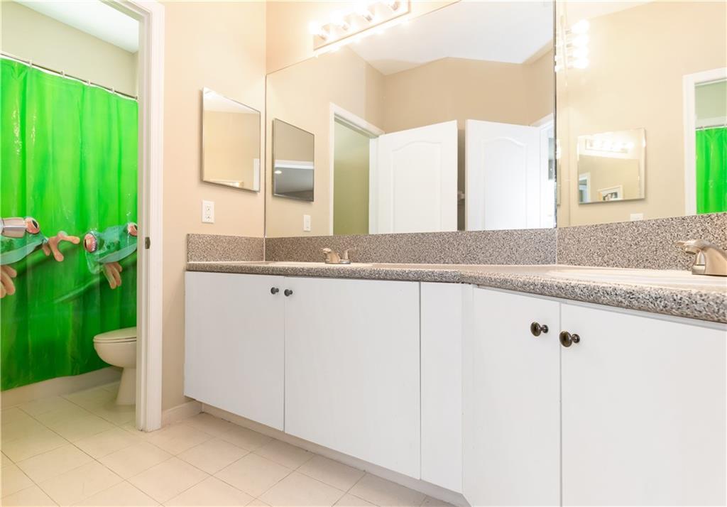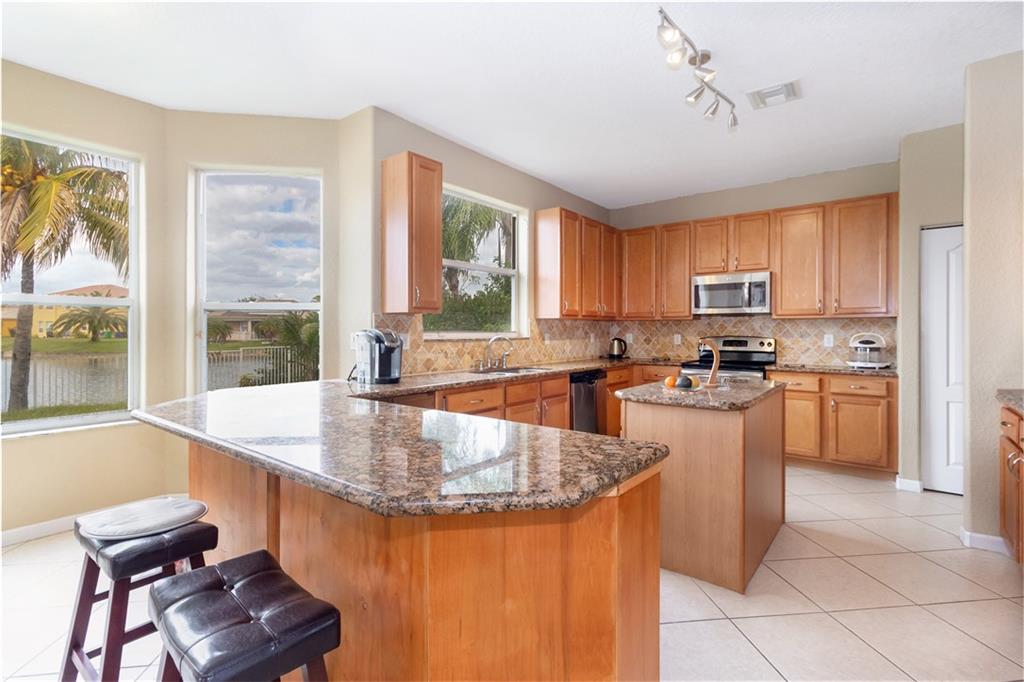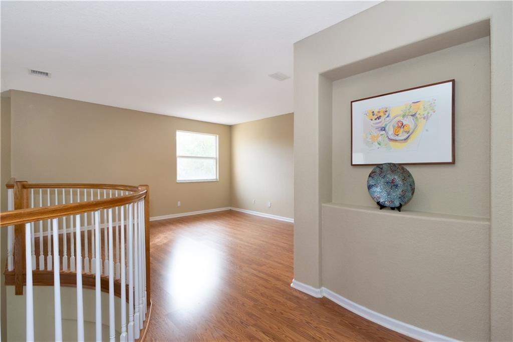 As soon as you walk in you will be greeted by the 2 story high ceiling and curved staircase which gives you the feeling of prestige. This home features tile flooring on the first floor and wood laminate flooring on the stairs and upper level. The large gourmet kitchen features granite countertops, new stainless steel appliances, snack bar and breakfast area. 1 bedroom and full bath are on first floor perfect for an elderly family member. The second floor features a large loft, master and 3 additional bedrooms. The master bath features his and hers vanities, large soaking tub, and a huge shower. The backyard is the perfect place to relax after a long day at work with beautiful lake views. Plenty of room to build a pool, backyard is fully fenced! New A/C, hot water heater, washer & dryer.