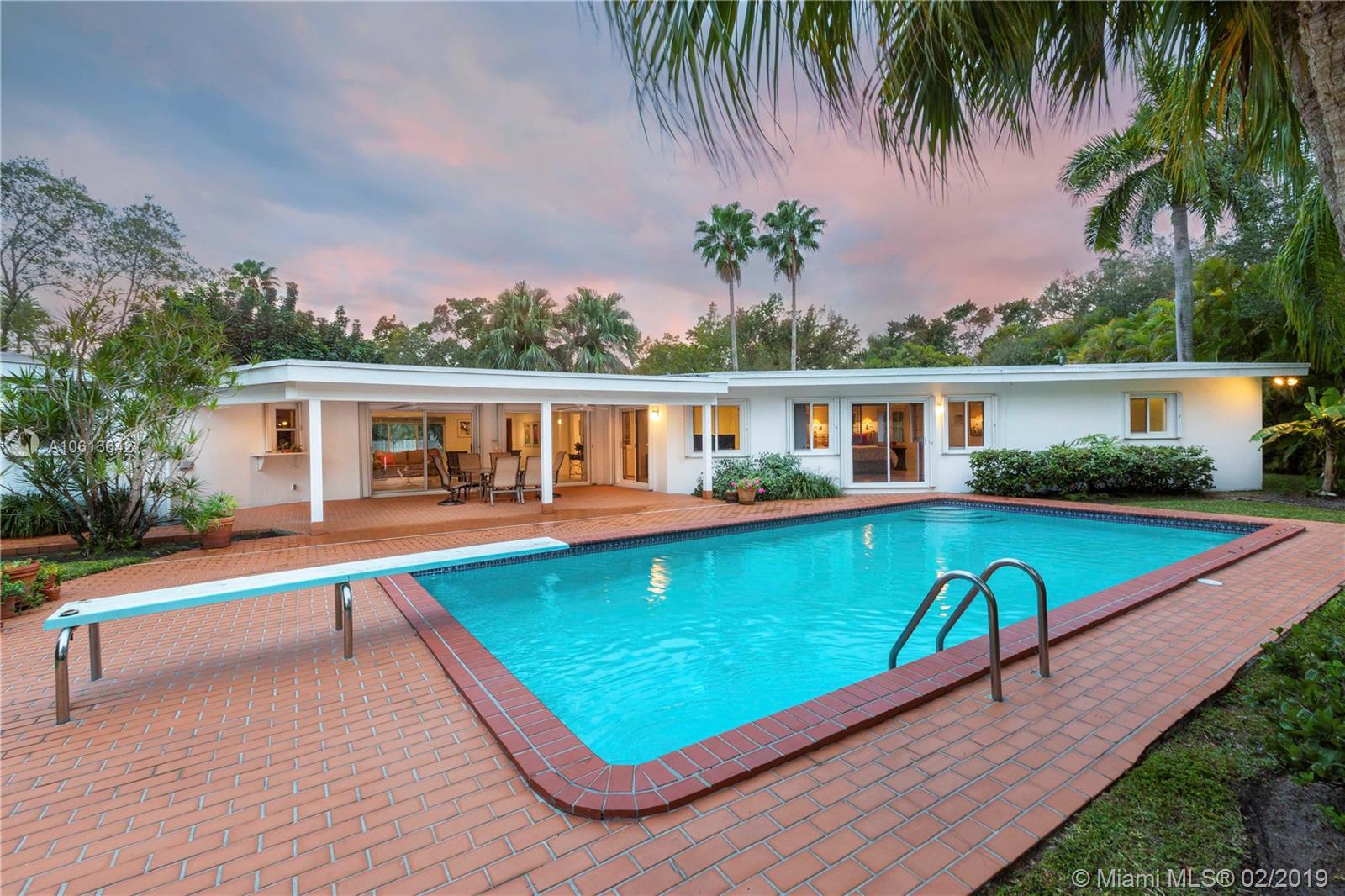 Beautiful, sprawling Florida Ranch, set on more than 3/4 –Acre corner lot. 5-BEDROOM, 4-baths, + office, 2-car garage and a beautiful pool and patio. This 4,162 sqft. home has a split plan, updated kitchen with an open plan, perfect for entertaining both inside and out. Updated Plumbing and electric, Accordion Shutters, but best of all, this beautiful home has no steps, it is all on one beautiful level, and offers Vaulted ceilings. The Master suite is large and comfortable, with an additional living area at the entry, and offers a spacious master bathroom. This Pinecrest home sits away from busy streets and its beautiful vegetation offer calm, relaxation and serenity, but is within a short drive to stores and restaurants.