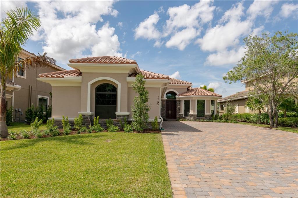 Brand new custom home with over 250,000.00 in upgrades. One of a kind never built before this way! Modern, S2 model! Ceilings have been raised, home redesigned, the master is an ensuite, custom closets enlarged, all w a 4 car garage. Stunning 4 bedroom, 3 baths, upgrades everywhere. Very open, airy floorplan, single story. Beautiful top of the line chef's kitchen, large island, cabinets to ceiling, quartz, wine refrig. and more. Upgraded pool and deck, white marble pavers. Beautiful sunsets overlooking the pool, clubhouse, water, and golf. This home has it all! Beautiful one story brand new, never lived in. All impact window and doors. Full one-year builder's warranty.