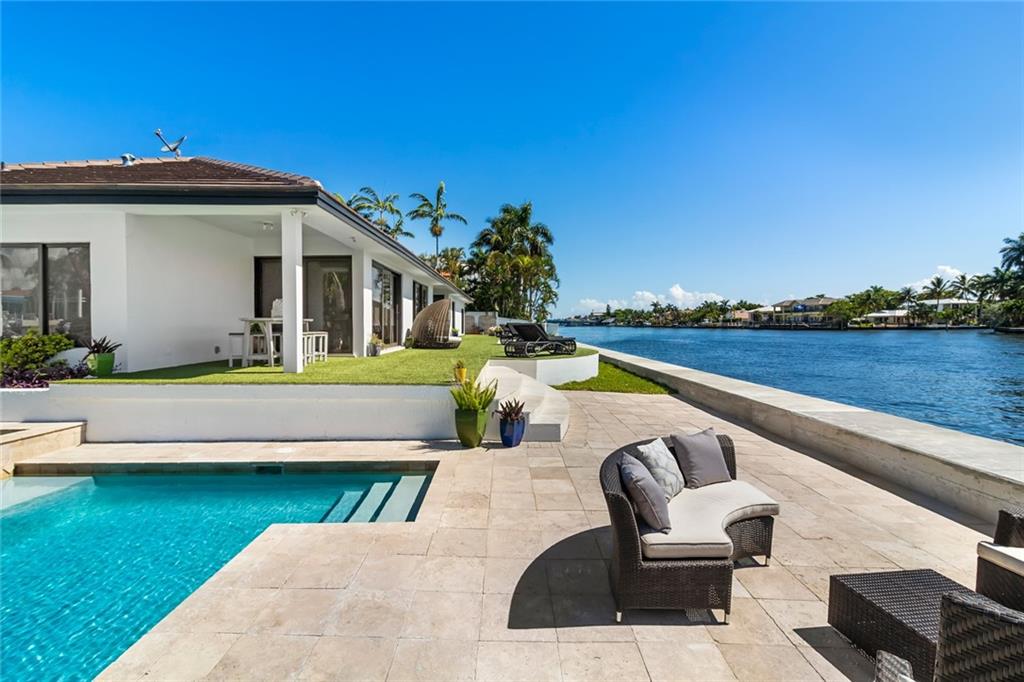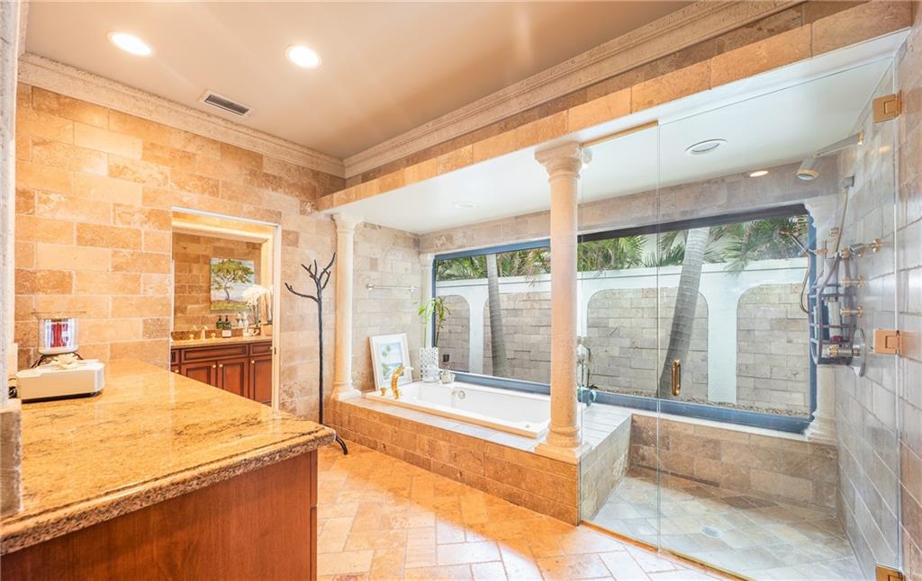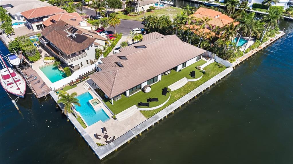 Rare Point Lot w/ Stunning Intracoastal Views & Sunrises. Enjoy The Feeling Of Being On Vacation Every Day In The Comfort Of Your Home. This Rare Luxury Property Maximizes The Best Florida Has To Offer, w/ Custom Open Floor Plan, His & Hers Master Bath Accompanied By Custom Duo His & Her Walk In Closets, High-End Hand Carved Wood, Travertine & Marble Flooring, Counter Tops, Custom Molding w/ 9 ½ Ft. Walls Throughout. 5 BD, 4 ½ BA, High-End Kitchen Cabinetry, Gas Stove & Appliances, 3 AC Zones, Jacuzzi Bath, Outdoor Pool, Lanai & Spa. 210 Ft. Just Completed NEW Regulation Seawall. NEW Roof, Top Of The Line Custom Designer Tile & Completely Renovated Exterior. Approved Plans For 180 Ft Wrap Around Dock & Boat Lift Available. With The Seawall Completed, This Unique Point Lot Won’t Last.