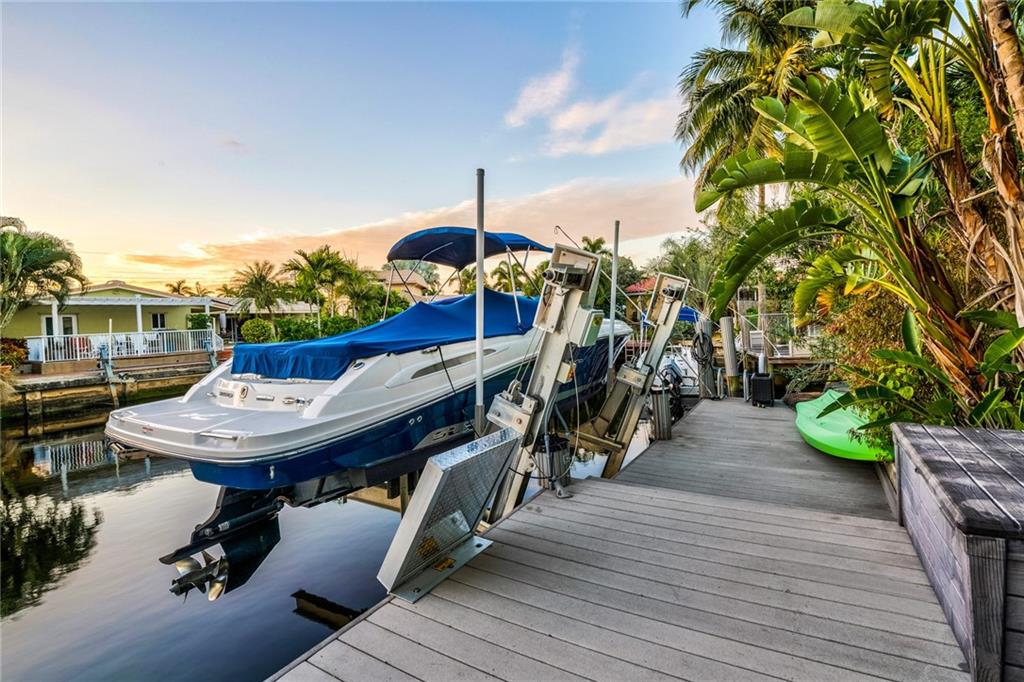 Welcome to 5931 NE 15 Ave set on 75 feet of waterfront in beautiful Coral Ridge Isles. This house has everything you are looking for. Three bedrooms, two bathrooms, 2,408 total SF, pool, gas range, and two car garage. Many recent updates and meticulously kept. Boaters will love the newly installed 10,000 ln boat lift and recently built Tiki Hut with electric. Enjoy long pool days with loads of sun around the pool, lush greeny for a tropical feeling and plenty of privacy. Other features include: impact windows and doors, custom made walk-in master closet, home generator, new window coverings in living, dining, kitchen and laundry rooms.