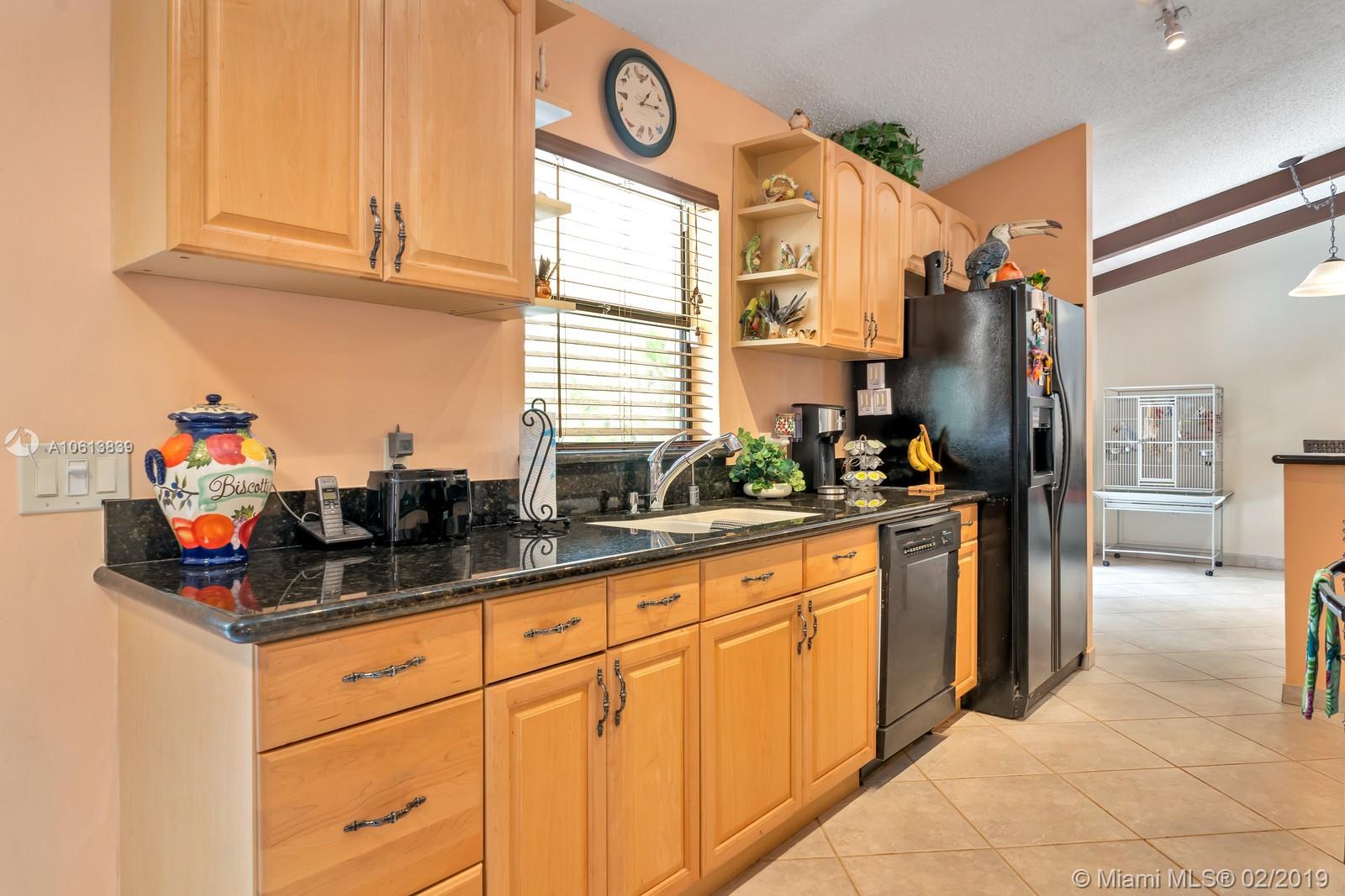 Pride of ownership is evident in this impeccable 3 bedroom/2 bathroom home in the sought-after subdivision of Woodbrige. Spacious garage with built-ins. Storm panels for all windows and a *post-Wilma* roof! Fenced yard with pool and paved area perfect for BBQ'ing. Owners suite is spacious and full of natural light, complete with sliding glass doors to the stamped concrete pool decking. Guest bath has been recently remodeled; master bathroom has double sinks and two shower heads. Kitchen updates include granite countertops and wood cabinets. Overall a beautiful and well-kept home in a great neighborhood.