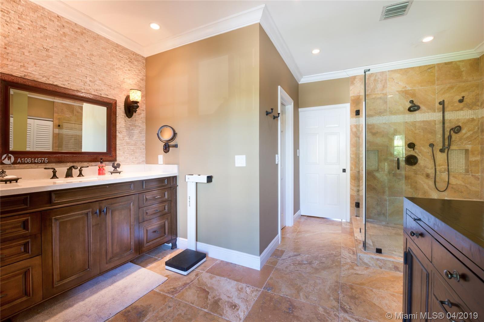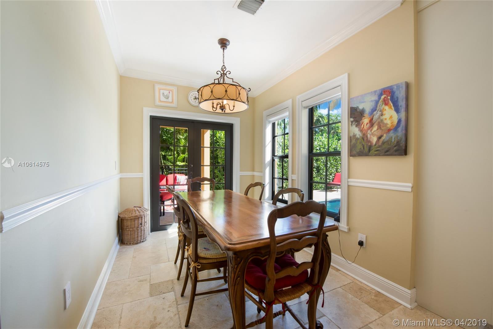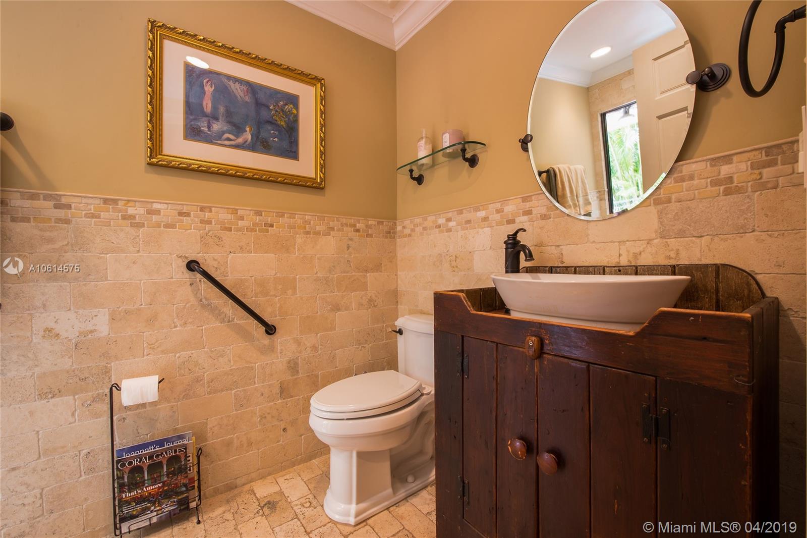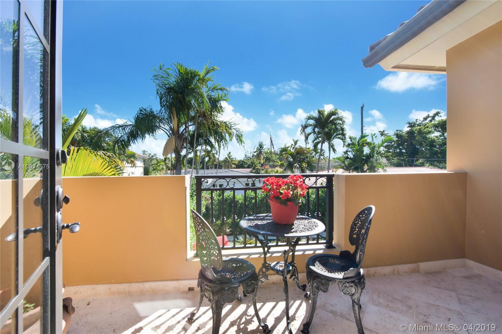 Beautifully remodeled Coral Gables home boasts backyard oasis with pristine heated saline pool and covered patio as well as quaint balconies off of each upstairs bedroom. Custom made wrought iron and impact resistant glass Majestic Entries doors open to foyer, living and dining rooms with hard wood floors and impact windows throughout. Stellar kitchen offers top-of-the-line stainless steel appliances, white wood cabinets, induction cooktop, and granite countertops. Adjacent to the kitchen is a cozy dinette and ample storage. French country stone floors in kitchen, dinette, and family room. Expansive remodeled master bathroom includes large walk-in shower, a second washer/dryer and two walk in closets. An abundance of spaces to relax and enjoy Florida living.