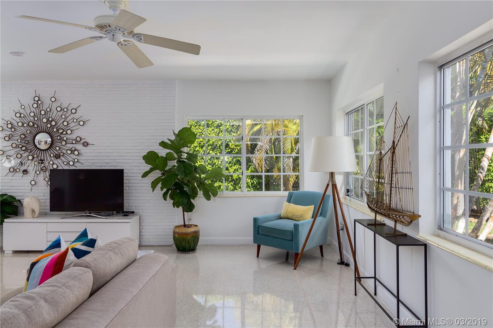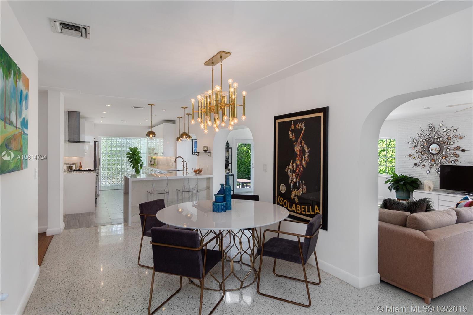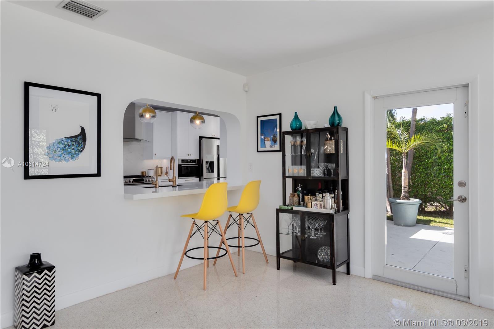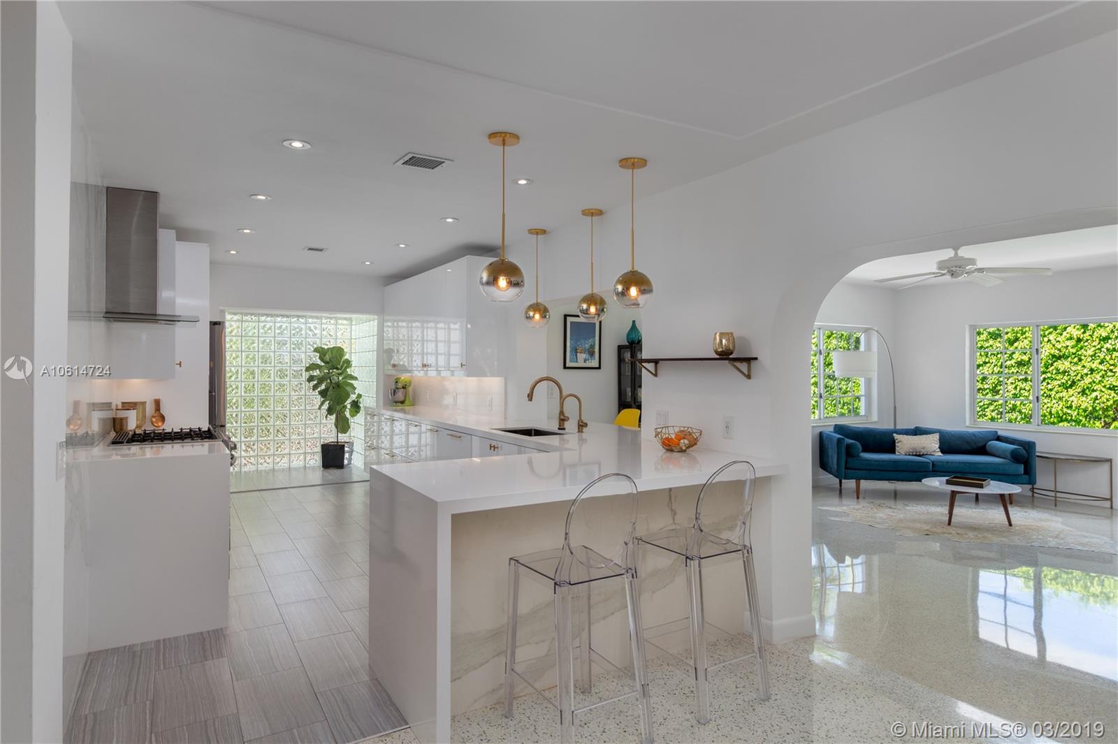 Immerse yourself in this stylish rejuvenated house w/designer finishes & a warm family atmosphere. 4 bedrooms (1 is used as an office) & 2 full baths. Located in the lush community of Miami Shores. Completely renovated, picture perfect kitchen w/newly installed elegant cabinets & an Italian marble accent-wall with dining bar. Beautiful Terrazzo floors accentuate the home's elegant style. Wood floors, well maintained & recently upgraded. Open layout, perfect for entertaining, with great natural light. 2 car garage with A/C perfect for a home gym & great for storage. Windows with shutters, & a new roof. Pool & patio with outdoor shower. Private fenced yard & nice landscaping. Near shopping, restaurants & Biscayne Bay. Quiet no-through street. Exclusive neighborhood with great schools.