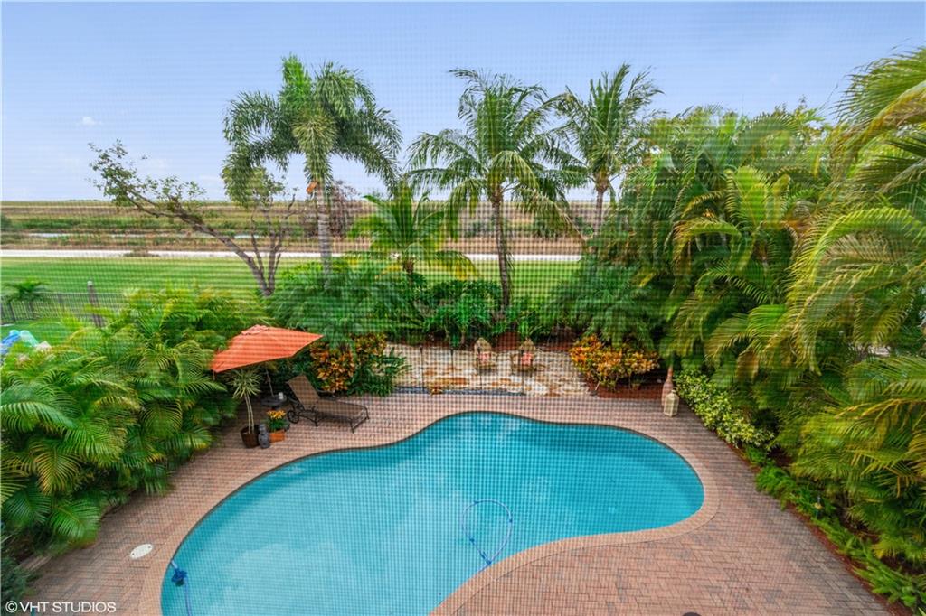 Florida living at it's finest! This beautifully appointed home is a must see! Enjoy spectacular sunset views from this impeccable original owner 4 bedroom plus a den Heron Bay home. Resort style very private backyard with sparkling solar heated pool, lush tropical landscaping, fully fenced, flagstone pavers, retractable awning over lanai, hurricane accordion shutters. Enjoy sitting out on the 2nd floor screened in master balcony overlooking expansive views of the Everglades nature. Soaring high vaulted ceilings in the dining room with french doors opening onto zen tranquil courtyard with fountain. Stunning wrought iron staircase with real hardwood floors. Great open room with spacious eat in kitchen, family room & Plantation shutters. Seller had 4th bedroom closet not put in for office.