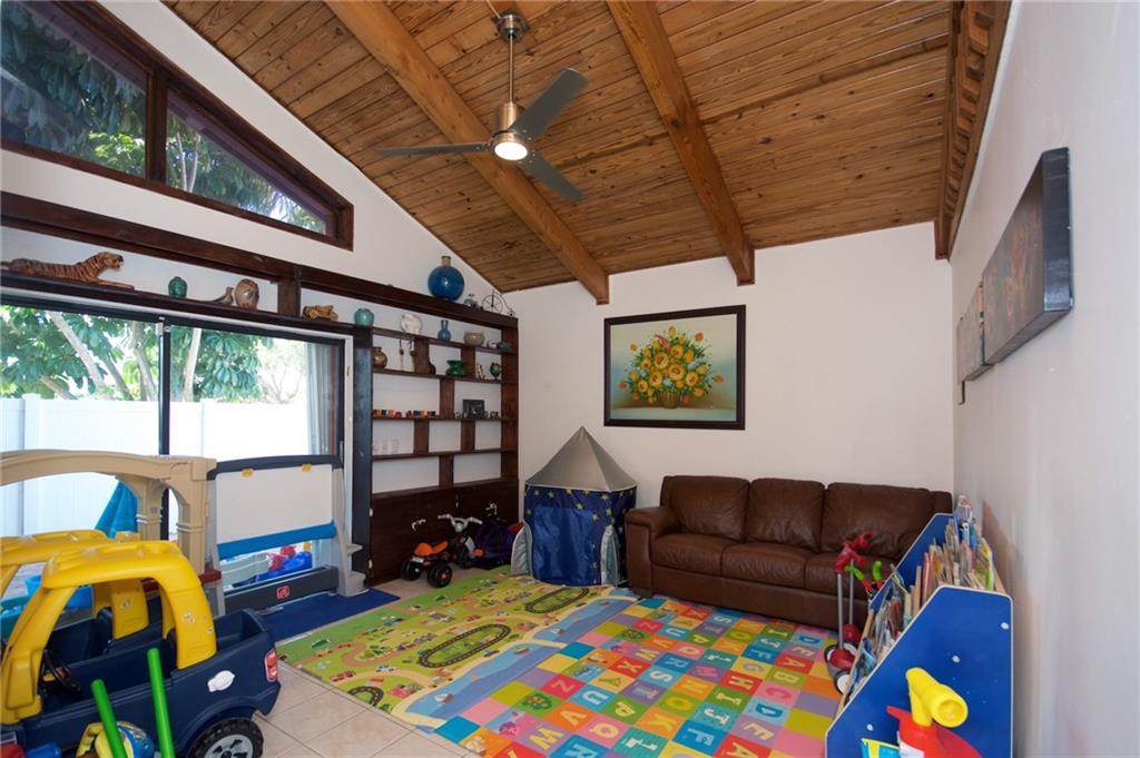 This charming, unique 2-story single-family 4/3 home is over 2,400 sqft on a large corner lot in Central Boca Raton. The house features an open floor plan and is covered entirely by vaulted wood ceilings, clerestory windows and loft spaces as well as a sleek and stylish newly renovated kitchen (Fall 2018) that flows to the dining and family areas. The kitchen boasts white quartz countertops, white shaker cabinetry, a farmhouse sink and stainless steel appliances. The expansive living/family room areas open up to a patio with gated pool and an enclosed side yard that’s perfect for a playground, sports, boat storage and more! The master bedroom suite contains vaulted wood ceilings, two walk-in closets and large bathroom with a balcony.