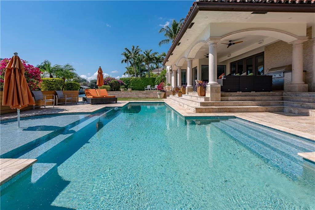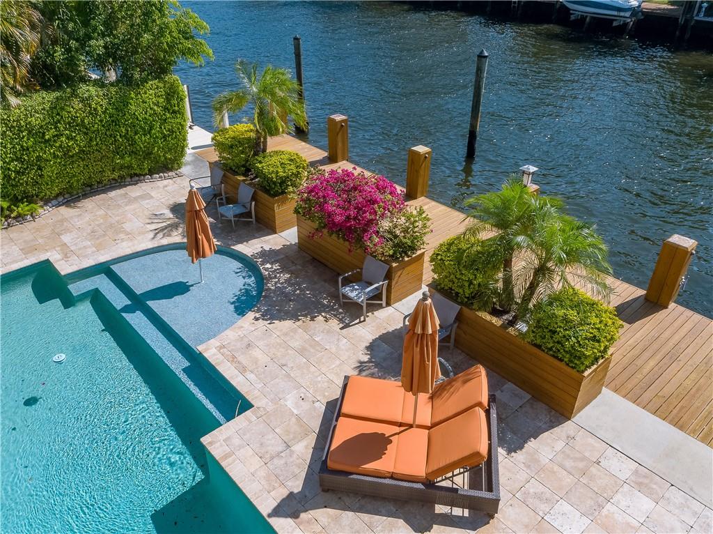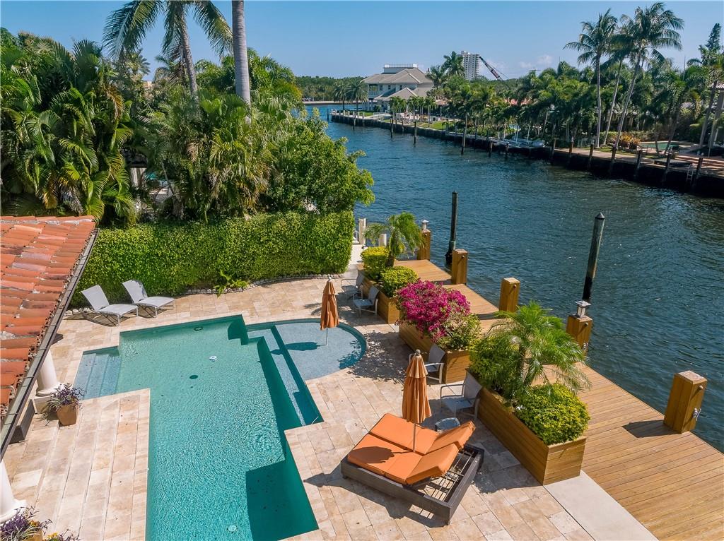 Completely updated, this magnificent waterfront home exemplifies Florida living at its best. The home boasts Pedini Italian Kitchen Cabinets and Miele appliances, two Sub Zero Glass Front Refrigerators, Quartz Countertops, Stainless Steel Island, and built in bar area. The exquisite Master Suite is on the first floor. Formal dining and eat in kitchen are perfect for entertaining. Lush landscaping completes the tropical environment both in front of the house and on the pool patio and waterfront area. The property has 100 feet of waterfront with no fixed bridges. The home also has all impact windows and a gas generator. Superior Coral Ridge location!
