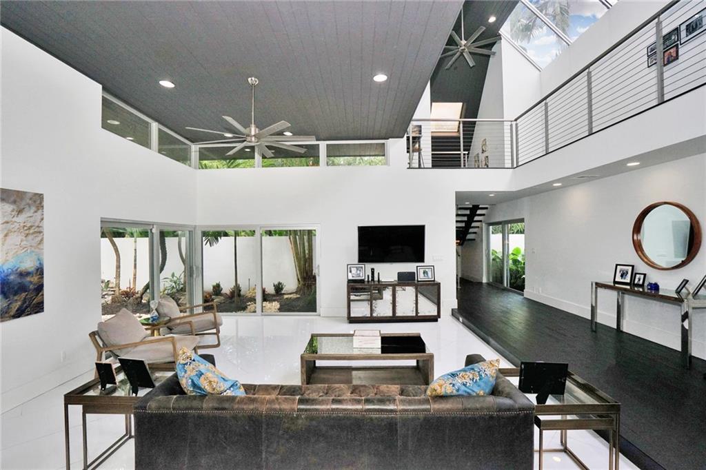 Modern estate set on a builders acre provides privacy, luxury, and security. Unrivaled offerings include a spectacular two-story entry, high ceilings, LED lights, and skylights that bring natural light in every room. This home offers 4 bedrooms, 3 baths surrounded by four tropical alcoves, a chef's kitchen with breakfast room, dining room, wet bar, den with copper working fireplace, master suite features dual closets, jacuzzi tub & shower, grotto pool, security cameras, and is perfect for entertaining. Home has WinDoor Impact Windows & Doors, Danze Plumbing Fixtures throughout, newer HVAC units, wetbar with wine fridge, and so much more!