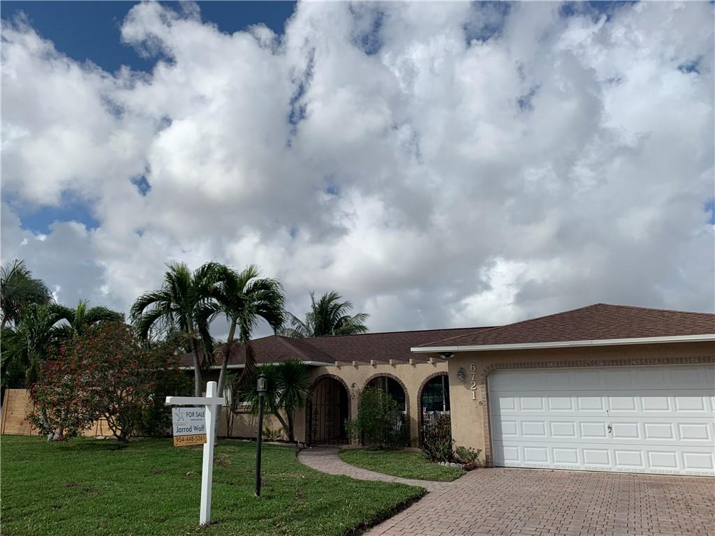 An amazing 3 bedroom /2 bath, open concept home. Interior fully remodeled, including brand new top of the line AC system, stainless steel appliances, hurricane impact windows on majority of home and a large kitchen island with quartz countertops. Brand New fence on the side yard with 12 foot gate, perfect to park your boat or RV! Day and night security cameras surround the property. Property record reflect a nearly 1,900 square foot home with two car garage on 0.22 acre lot! Beautiful backyard with pavers, fruit trees and underground pool with safety fence. Desirable street in Palm-Aire Village East at the end of a cud-de-sac.