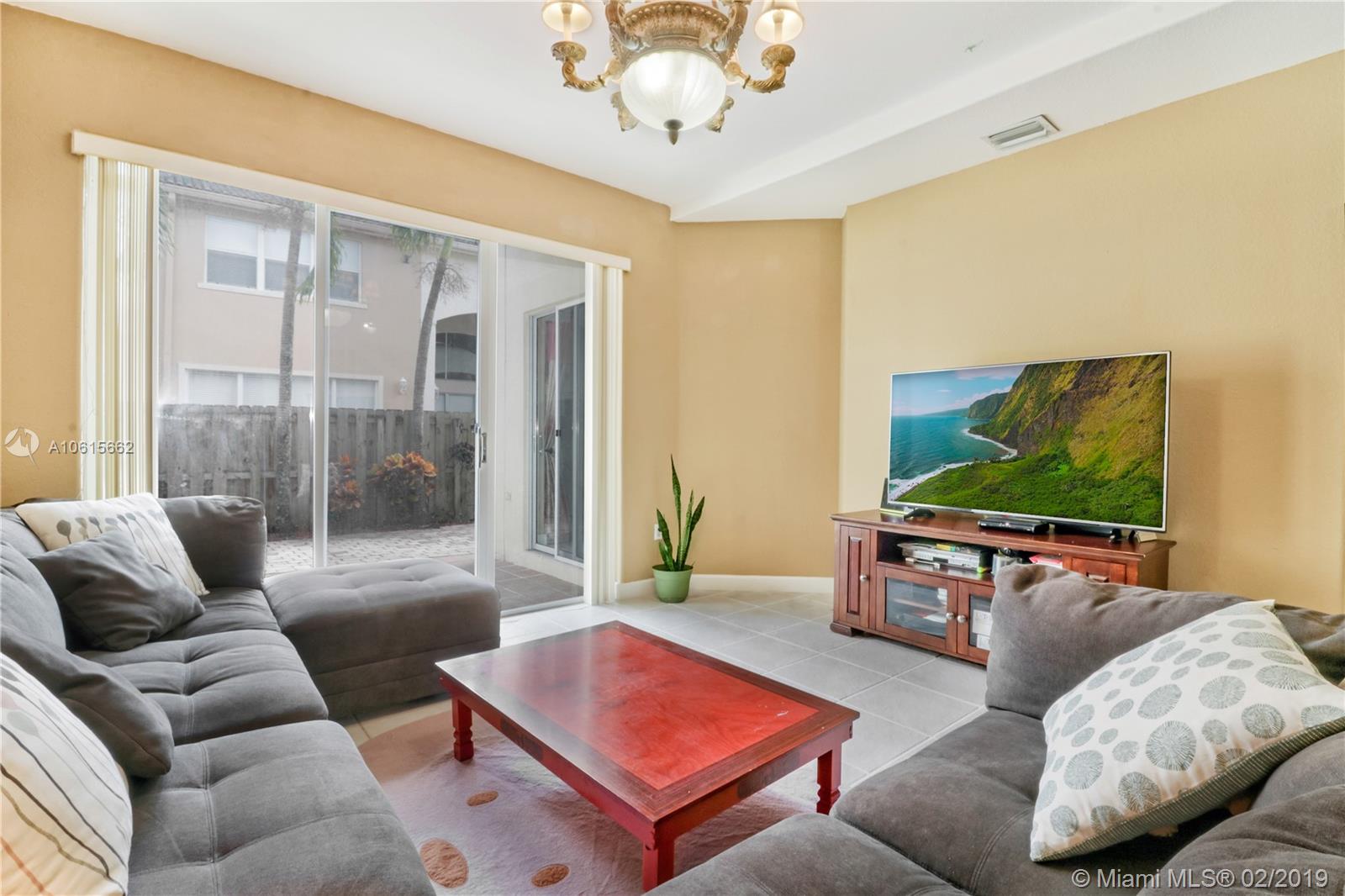 Beautiful townhome with all the space you desire! Situated in a centrally located and gated community of Doral, Las Cascadas! This 2,226 sq ft two story home has 4 great sized bedrooms and 2.5 bathrooms with a spacious 2 car garage. Step into a captivating well landscaped courtyard entrance to a formal living room leading into a large kitchen with stainless steel appliances and an expansive family/dining area, which communicates perfectly to your backyard patio. Also an additional family room to add to your entertainment! Upstairs includes an ample master bedroom with huge bathroom! Community pool located a block away! A perfect family home in a perfect family neighborhood!
