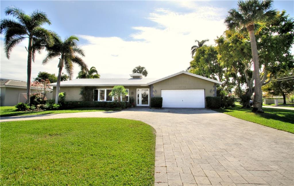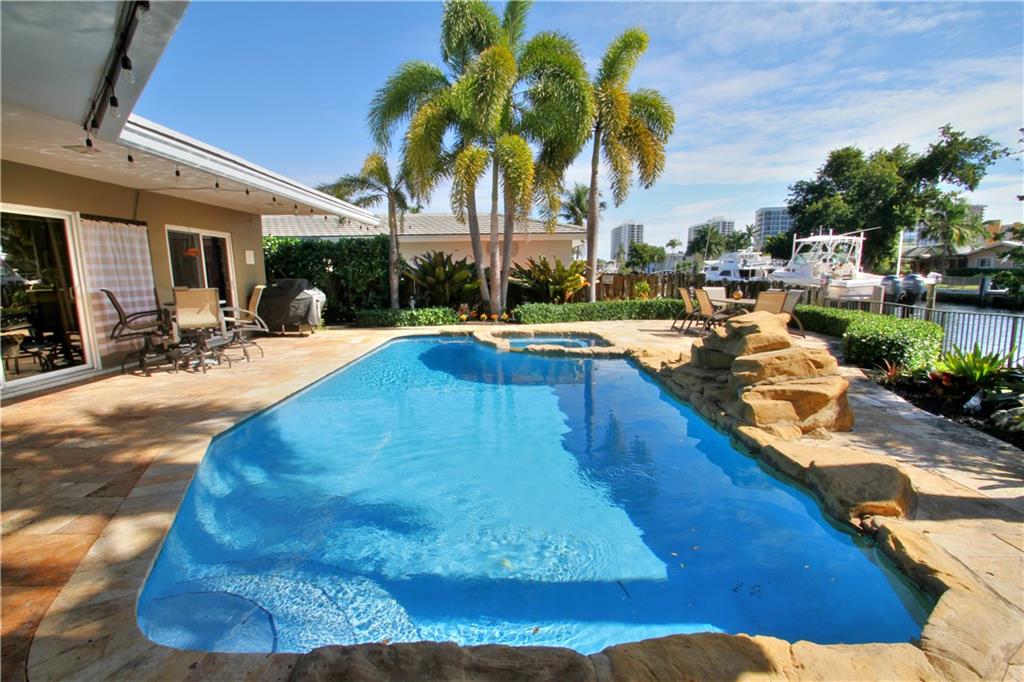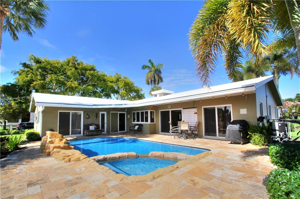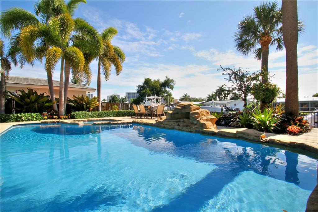 No Fixed Bridges ! 83 ft and additional 50 ft on "L" shaped corner lot with direct ocean access. 3/3 pool home facing south in desirable Harbor Village.Upgraded kitchen/baths and impact windows/sliders. Current family room could be 4th bedroom (as built). Hardwood floors in the living/dining area. Heated saltwater Pool/Spa and patio remodel includes travertine deck and relaxing waterfall. Circular paver driveway accommodates many vehicles in addition to the 2 car garage. Plenty of green yard space for activities on this beautifully landscaped property with stunning views down the waterway. Wide canal-7 lots from the Intracoastal Canal and just a few minutes to the Hillsboro Inlet. Corner lot also includes 10x5 green area to the south overlooking canal.