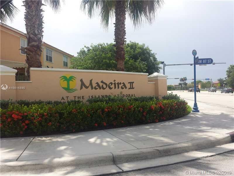 Beautiful Townhouse in Madeira II at Islands at Doral. This Mariana model features 4 bed / 3 bath, 1 bed and bath downstairs. The kitchen features granite counter tops, and stainless steel appliances. Ceramic tile in first floor, wood stairs. Beautiful patio with brick pavers. Walking distance to A+ Schools, DR Rolando Espinoza and Ronald Reagan High School, and Easy access to major highways. maintenance $205.22 Monthy.