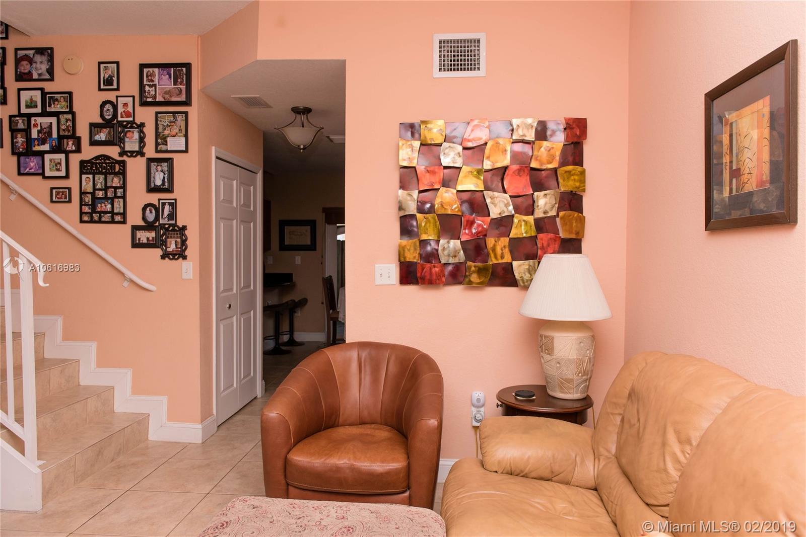 Look no further! Impeccably clean corner townhouse in Tuscan Lake Villas. This beautiful home features tile floors throughout, upgraded kitchen with granite counter tops and stainless steel appliances (refrigerator 2017), A/C installed in 2017, Titan Tankless water heater installed in 2017, storage space under the staircase, accordion hurricane shutters (installed 2014) on windows and french doors leading to the patio, covered stone paver patio ready to entertain family and friends, and extra storage sheds. Property is centrally located with easy access to I75 and the Palmetto expressway, shopping centers, restaurants, schools and parks. Schedule showing today! This one won't last!