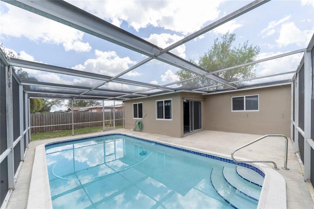 Exterior just repainted! Modern brown neutral colors!!! No HOA!! Upgraded & charming 2/2, can be converted to a 3 bedroom!! Gas stove, great for chefs! Gas AC & water heater. Newer AC. Hurricane horizontal sliding windows & garage door. Front door & back sliding door are not, but shutters in garage for them. Gas range / water heater/dryer – hard to find in FL! Pool, screened in. Fenced in backyard (wood fence w/ gates on both sides). Stainless steel appliances in kitchen, plus washer/dryer in garage. Ceiling high cabinets in kitchen & giant sink. Master bath: LED color changing lights in the crown molding (flip both switches when you are in there) / Tigers eye stone floor / Shower tower with jets. Stone tile/ledgestone mosaic.