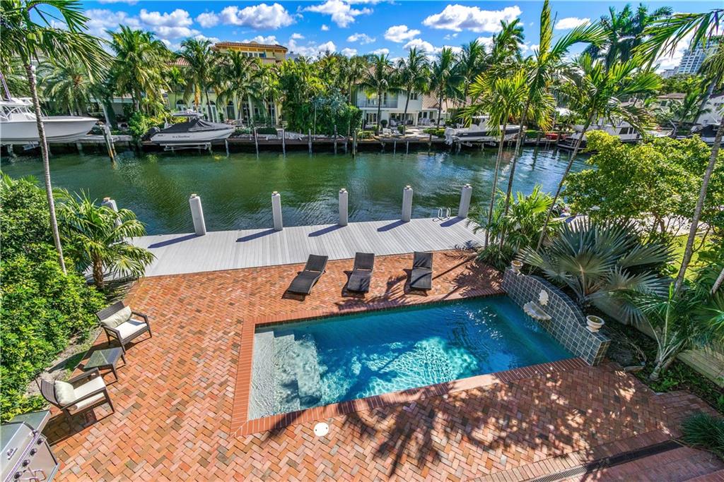 Waterfront sensation. With 3,193 sq ft of living area this striking Riviera Isles 2 story property features southern inspired design elements, a floor plan that flows seamlessly from beginning to end with French doors that open to an outdoor oasis complete with covered porch, large patio, heated pool w/ water feature, 50’ deep water frontage, a seawall raised to current code and new dock. Interior features include stone and wood floors, volume ceilings, living room w/ gas fireplace, column framed dining area w/ coffered ceiling, a spacious kitchen with granite counters, Sub-Zero, Bosch and Jenn-Air appliances that opens to main living area. 2nd floor master w/ en-suite bath, sitting area, office & large covered porch providing spectacular waterfront views. Minutes from beach & fine dining