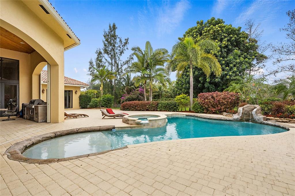 Stunning home on over one acre in Pine Tree Estates. 6 bedrooms, plus an office, 5 full baths plus one half bath. This home goes and goes. One story of awesomeness. Impact doors and windows, 24" Travertine floors, stone fireplace, columns and a fantastic gourmet kitchen. Enormous patio with huge covered loggia. The home has a mosquito mister system that covers the rear patio and front of the home. Garage has a lift so you can stack 2 cars. This really has to be seen.