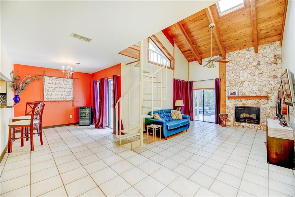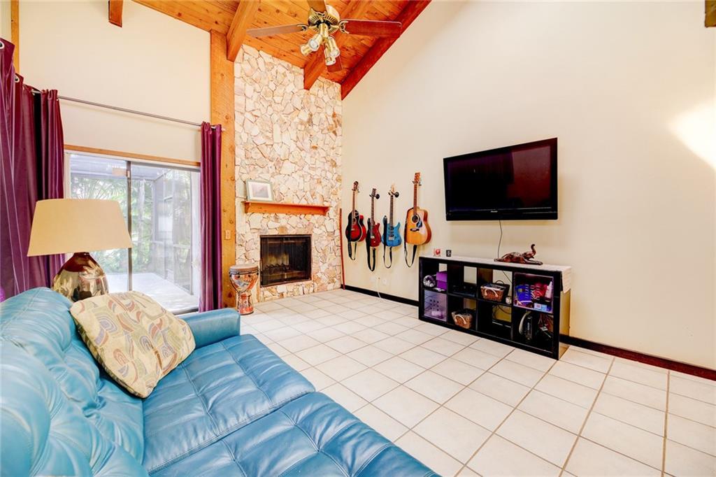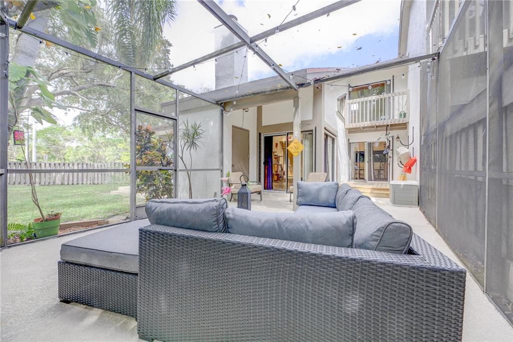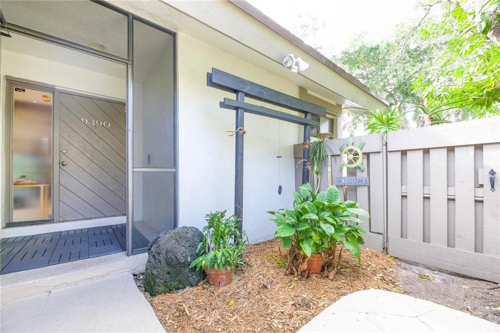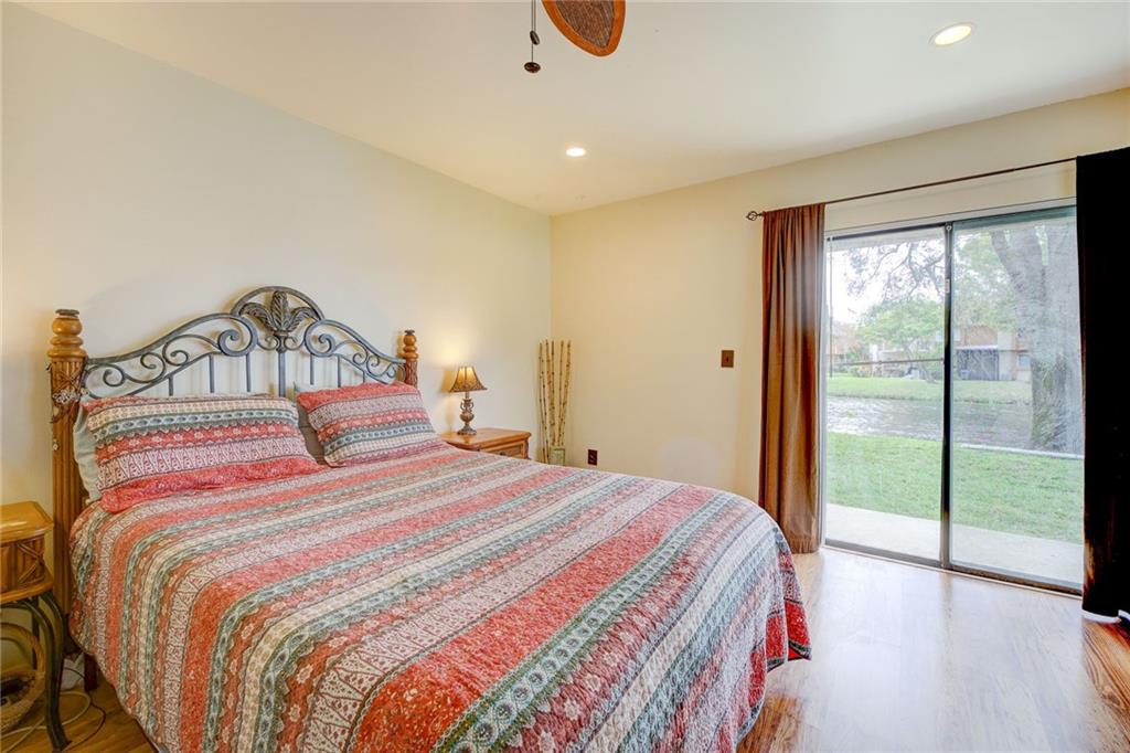 Rare opportunity for a 2 bedroom, 2 bath townhouse with a large, private yard on a lake! Orchids galore! Enjoy the outdoors from your large, screened patio off the living and dining rooms or from the open patio off the master bedroom. Inside is unique and special with natural wood, vaulted ceilings with skylights and a natural stone wall with fireplace. A spiral staircase takes you to a private loft overlooking the living room. Water views everywhere--from living room, dining room, kitchen, master bedroom, and from balcony off the loft. The kitchen and master bathroom are beautifully updated. Tile floors with laminate in bedrooms and loft. Private entry with rich foliage. Pet friendly. Kayakers delight! VA-approved condo or conventional financing with minimum 25% down. Central Park nearby.