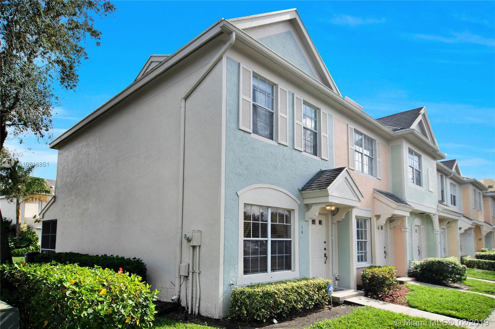 GREAT CORNER TOWNHOME LOCATION!!! COCONUTS IN WESTON! 2 BEDROOM TOWNHOUSE WITH 2.5 BATHS. TILE FLOORS IN LIVING AREAS & LAMINATE WOOD FLOORS IN BEDROOMS. WHITE ON WHITE KITCHEN AND BATHS. ENJOY THE LIFESTYLE OF WESTON AND BONAVENTURE COUNTRY CLUB. MANDATORY ANNUAL FEE TO TOWN CENTER CLUB $285