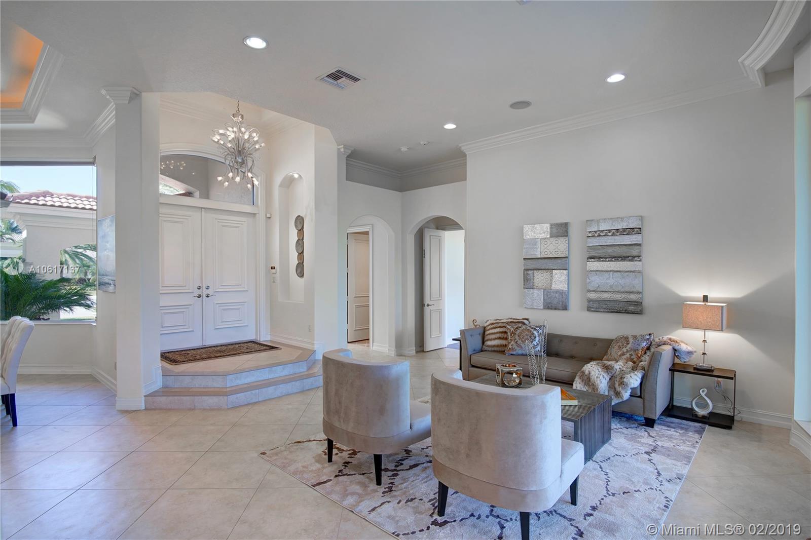 A brilliant blend of effortless sophistication in one of the most private of settings*This waterfront gem,nestled on a secluded cul-de-sac street,offers 4bdrms/3.5bths/ofc/5th bdrm & 3cg*Desirable triple split bedrm plan,family rm w/built-in wine cooler,solid wd drs,24” porcelain tile flrs & hardwood flring,designer light fixture & is wired w/a whole house,multi-room audio syst*All-marble master bth,designed w/jacuzzi tub & dble shower*Newly renovated island kitchen & breakfast nook is equipped w/new Wolf 5-burner cktp,48” Monogram refrigerator & dishwasher & ss dble ovens*Newly refinished heated pool/spa overlooking the serene lake w/ ample room for a playground*Sensational find,offers recently refinished hardwd flring,new washer/dryer. Welcome home, enjoy the country club lifestyle.